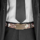 メンズブラウンレザーバックルベルト35-40インチウエスト調整可能コーヒーチェック