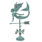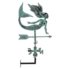 Add some rustic charm and keep an eye on the wind with this magical mermaid-adorned free-standing weather vane. Creatively crafted from metal and copper for years of maintenance-free use, the aged copper and verdigris patina finish gives it a timeless look that is sure to complement a variety of home decor styles. Measuring 17.5 inches long, 10 inches wide, and 33 inches high with the included free-standing base, or optional wall-mounted arm (mounting hardware not included). It is easy to assemble for a fun and functional addition to your home. Makes a great gift for yourself or friends and family. Our eBay Store About Us Add to Favorite Sellers Verdigris Copper Mermaid Tabletop Weathervane Home Garden Decor w/ Optional Fence Mount OVERALL SIZE - 17.5 Inches Long, 10 Inches Wide, 33 Inches High DURABLE MATERIAL - Creatively Crafted From Copper, Metal, With Chrome Finished Balls For Years Of Maintenance Free Use RUSTIC FINISH - Aged Copper And Verdigris Patina For A Timeless Weather Worn Look That Compliments A Variety Of Home Decor Styles EASY ASSEMBLY - Simple Assembly For A Fun And Functional Weathervane With Free Standing Base Or Wall Mounting Arm Optional Parts MYSTICAL CHARM - Let This Magical Mermaid Show The Way The Wind Blows Add some rustic charm and keep an eye on the wind with this magical mermaid-adorned free-standing weather vane. Creatively crafted from metal and copper for years of maintenance-free use, the aged copper and verdigris patina finish gives it a timeless look that is sure to complement a variety of home decor styles. Measuring 17.5 inches long, 10 inches wide, and 33 inches high with the included free-standing base, or optional wall-mounted arm (mounting hardware not included). It is easy to assemble for a fun and functional addition to your home. Makes a great gift for yourself or friends and family. Product Details Color Teal Height 33 Length 17.5 Weight 4 LB