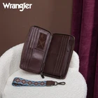 A subtle but elegant women's wallet, card cases & money organizers Wrangler.Made of PU leather and canvas, this wallet has:-Aztec print on canvasWhipstitch detailWrangler logo on the frontZipper closure3 open compartment, a zipper pocket and 10 card slotsSingle removable strap to convert the wallet into a wristlet8.5" x 0.2" X 4.5"