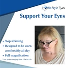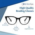 Description "The Large Styish CateyeR reading glasses by are designed to block glare and reduce the impact of long exposure to blue light. Blue light is naturally occurring, but with the increase of use of digital devices, people are exposed to high levels of super-bright artificial blue light. Many people report tired or strained eyes after a full day looking at their computer monitors. Some people even claim to experience migraines. These blue light blocking reading glasses help to reduce blue light impact on your eyes better than many other clear blue light blocking lenses. The anti-glare lens coating also helps to reduce the effect of brightness. These retro reading glasses are non-prescription with a magnification strength of 0.0x. They have been designed to be lightweight, so can be worn as long as you need to look at blue light screens. Spring hinges at the temple help to ensure a close, comfortable fit. Features: Frame front measurement: 5.6 inches Temple length: 5.75 inches Bridge width: 0.75 inches Lens height: 1.9 inches Lens width: 55 mm Frame material: High quality acetate Lens material: Aspheric plastic with anti-glare coating is committed to providing you with comfortable, high quality glasses and sunglasses to help you take back your ability to read. Reading glasses aren't just for the little old lady set! All frames are designed to keep you looking au courant no matter what your age." Stylish reading glasses - Sleek and non-prescription cat eye reading glasses that allow readers to enjoy eyesight benefits even on gadgets as it blocks glare and blue light. The ideal blue light-filtering reading glasses to wear with style. Premium-quality - These exceptional blue-light-blocking reading glasses for men and women are made with premium quality acetate frames and their lenses are made with additional anti-glare coating. The spring hinges at the temple also secure a good fit. Support your eyes - No more straining and give your eyes the support they need. These readers for women and men help eyes with their optical needs in reading, computer use, and even gaming. Enjoy the pair of spectacles for different optical needs. One size fits most - These high-power reading glasses are lightweight and comfortable to wear all day long. They are designed to be worn by most adults with optical needs. Its frames are available in black, clear, and clear rose. Be in style with - Recover your love for reading while being in style. takes pride in designing high-quality and stylish solutions to common eyesight needs. Reading glasses aren't just for the little old lady set. All frames are designed to keep you looking au courant no matter what your age. If you have macular degeneration or cataracts, a visit to your ophthalmologist can help you determine which magnification is best for you.