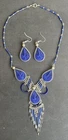 This listing is for a dark blue dream catcher style matching necklace and earrings set. You will receive a set just like the one in the picture. It is set in alpaca silver which is an alloy of zinc, iron, nickel and copper. It is extremely lightweight and it will not rust or tarnish. The set was handmade in Peru. The necklace is approximately 17" in length and the earrings are 2" long, with the ear hooks included. Please check out my Ebay store for more jewelry options. 1-se-th-dblu-2