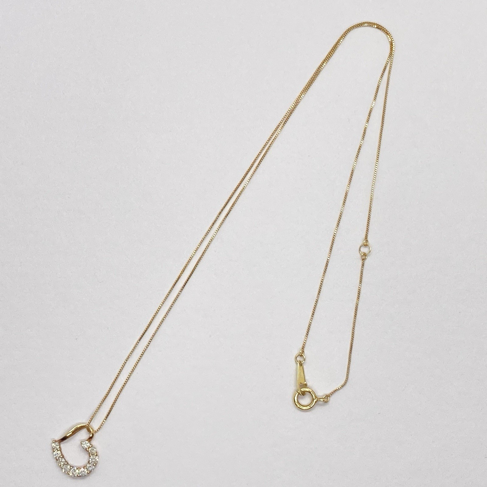 【 Description 】 Stone : Diamond 0.2ct Pendant top metal : K10YG Pendant Top : approx. W 11mm(0.43in) H10 mm(0.39in) Chain metal : K10YG Chain : approx. 37cm(14.5in) + 3cm(1.2in)(Adjuster) Weight : 0.9g(0.51dr) Please allow slight differences due to measurement size. There are some small scratches, but no noticeable to the naked eye. There is a dent in the clasp ring, but it does not interfere with wearing Please refer to the pictures in terms of its condition. Multiple orders that can be packed and shipped simultaneously are very much welcomed!! Shipping fee could be discounted depending on size of a box for your multiple purchase. Please contact us before you purchase. If you have any question or concern, Please do not hesitate to contact me. Thank you for visiting. 【 International Buyers 】 Please Note : Import duties, taxes, and charges are not included in the item price or shipping cost. These charges are the buyer's responsibility. Please check with your country's customs office to determine what these additional costs will be prior to bidding or buying.