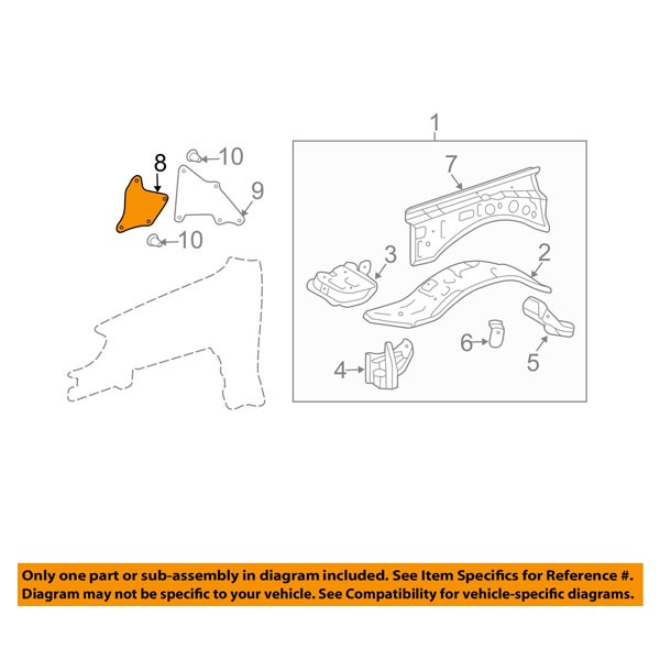 BRAND NEW SPLASH SHIELD INNER FENDER LINER SEAL PANEL! High Quality - Certified - Replacement Aftermarket - Made Of Durable Components This item is a Non-Original part Compatible with the following years and models: 2010 2011 2012 2013 2014 2015 2016 2017 2018 Lexus GX460 (Base, Executive, Luxury, Premium, Ultra Premium) 2003 2006 2007 2008 2009 Lexus GX470 2003 2004 2005 2006 2007 2008 2009 2010 2011 2012 2013 2014 2015 2016 2017 2018 Toyota 4Runner (Limited, Sport, SR5, Trail, TRD) 2007 2008 2009 2010 2011 2012 2013 2014 Toyota FJ Cruiser (Base, Trail, TRD) Note: 4Runner Models without Dynamic Suspension Note: Sport Utility 4-Door - 2.7 & 4.0 & 4.7 Liter Engine - Plastic Placement: Front Left Driver Side