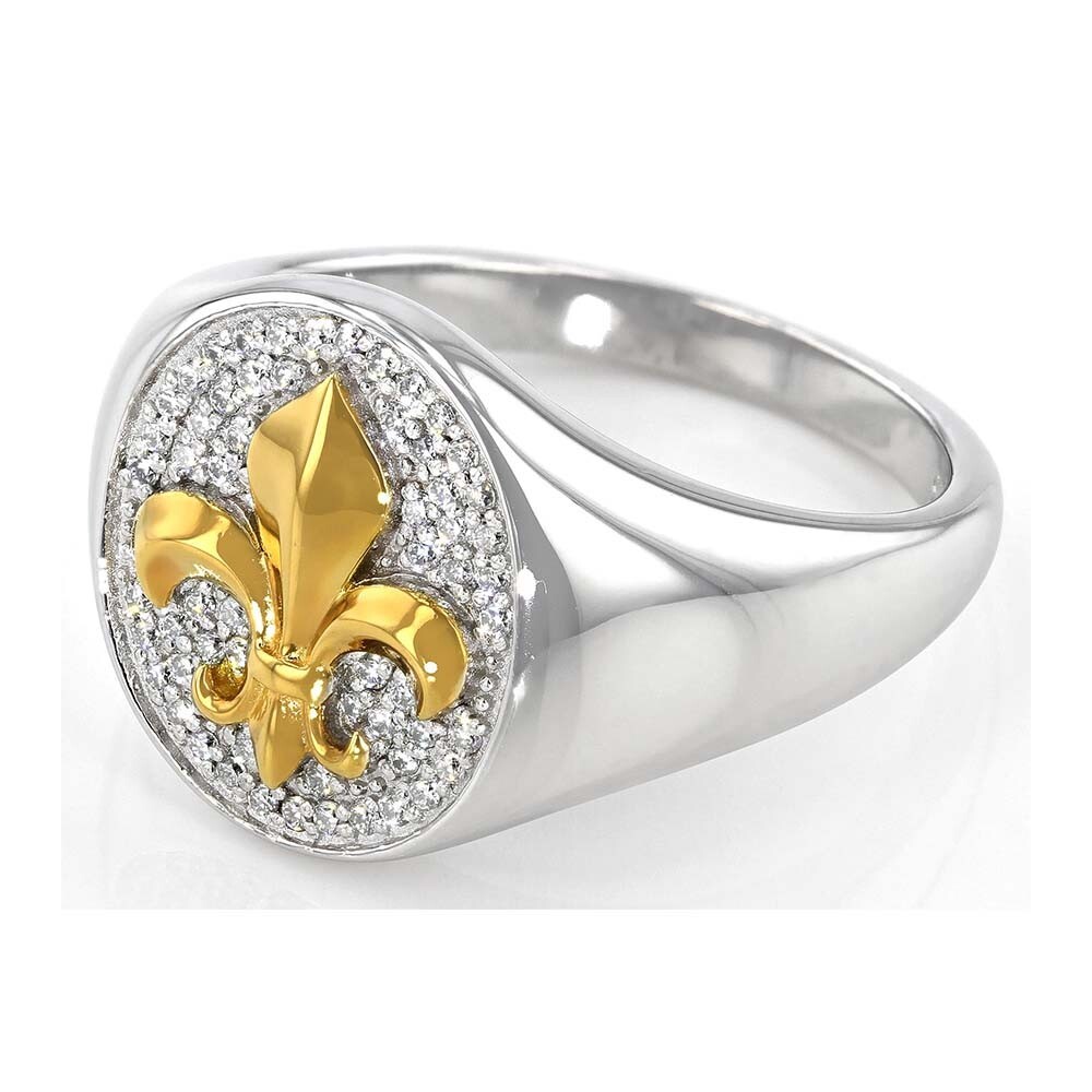 0.60Ct D/FL Moissanite 14K Two-Tone Gold Plated Fleur-de-Lis Statement Mens Ring