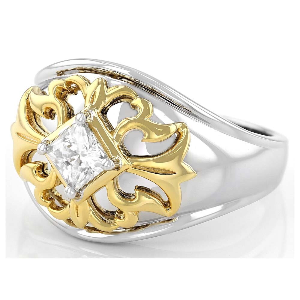 $ 102.4Cross Pinky Men's Ring 0.25 Ctw D/FL Genuine Moissanite 14K Two-Tone Gold Plated
