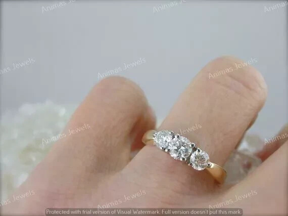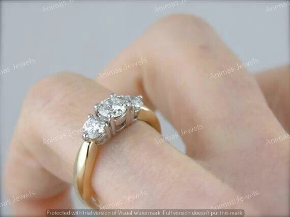1 CT Moissanite 3-Stone Past Present Future Wedding Ring 14K 2-Tone Gold Plated Customization: Want to add your personal touch to this piece? Contact us and we will create one just for you. Most customization requests include: 1) Ring Resizing 2) Redesign 3) Metal Change (Silver/10K Gold / 14K Gold /18K Gold) 4) Metal Color Change (White/Yellow/Rose/Black) 5) Color Stones (White Topaz, Pink Sapphire, etc) 6) Engraving (Name or any message - no of characters subject to size of jewelry) 7) Anything under the sun that catches your fancy, we will give it a try :) Payment: We accept payment via PayPal only. You can also pay using your credit card, via paypal, by using paypal as a guest. Payment is required within 3 days of the sale of an item. Shipping: International shipments are usually delivered within 2 to 6 weeks, depending on the time taken to clear customs. We are not responsible for any delays due to customs. Please note that all countries charge a duty on imported goods. A customs clearing charge is also imposed in many countries. We are not responsible for the amount of duty or any other related charges. Terms & Sale: We want to ensure that you are completely satisfied with your purchase. If not, then please let us know before leaving any feedback and allow us to work with you to completely resolve any issues that you might be facing. You can return the item for a full refund LESS shipping, within 14 days of item(s) receipt date. There is no restocking fee. 100% Satisfaction Guaranteed. All returns must reach us within 14 days after the item was delivered to you the item must be in the original condition and with the original tags attached. Contact Us: You can contact us by clicking on 'ask seller a question' Shipping & Returns Customer service