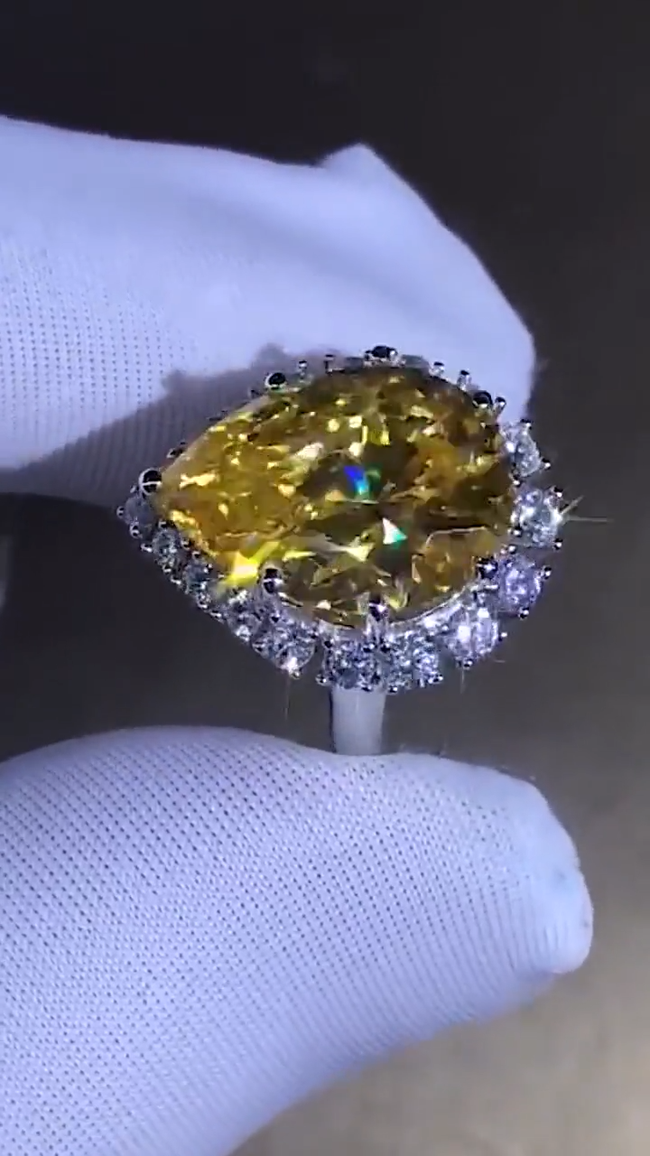 10 Carat Pear Cut Moissanite Ring Rare Vivid Yellow VVS Halo ๐ Available Metals: A) 5X Platinum Vermeil, B) Solid 10K Gold, C) Solid 14K Gold, D) Solid 18K Gold, E) Solid 950 Platinum. โ HIGHEST QUALITY Certified White Gold, Rose Gold, Yellow Gold & 950 Platinum. (Not Trash). ๐ Ring Size: 2,3,4,5,6,7,8,9,10,11,12,13,14,15,16 and anything between these ring sizes available. It could be 1/4, 1/2, or 3/4. We Fit It to your Exact Finger Size no matter what size you want. ๐ Main Stone: HARDEST Quality VVS GRA Certified Hand Cut Moissanite (Pass Diamond Testers) โจ Side Stones: Premium Quality VVS Moissanite. (Pass Diamond Testers) ๐ Certified: GRA - GRC ๐ Polish: Excellent Polish. Shiny & Clean for Maximizing Sparkles. โฆ Cut: Hand cut Excellent cut & Symmetry with Crisp & Sharp Edges/Corners. ____________________ ๐ 100% Handmade with GORGEOUS & Accurate Details. Itโs an Art, not only a Valuable Material. ๐ 60 Days Money Back Guarantee for Any Reason even if you don't Fall In Love with it. ๐คฏ FREE LIFETIME Main Stone Warranty & Side Stone Replacement. (No Color Change). ๐ FREE LIFETIME Jewelry Cleaning & Re-plating. ๐ Hypoallergenic. Skin Friendly. Doesnโt cause any type of Allergies. ๐ Customizable with/to Your Favorite Stone/Jewelry Type & Shape. ๐ FREE STUNNING Random GIFTS On Every Order (we sell them for +$200 up to over +$700). ๐ฅฐ Amazing Wooden Gift Boxes for Your Main Jewel & its Gifts. ๐ฅณ Gift Wrapping Available (we wrap with no tags or receipts, ready to present). ๐คฉ VIP Customer Service to Make Your Dreams Come True in the Most Fantastic Way. ๐ FREE SUPER FAST FedEx Express Shipping. ____________________ ๐โ + Our 5X Platinum Vermeil: Platinum is 9.4 times RARER & slightly more DURABLE than gold. Rings with platinum end up more EXPENSIVE than gold because the DENSITY of platinum is a lot HIGHER and the QUALITY is EXTREMELY PURER. Rings THICKLY plated FIVE TIMES with platinum offer MUCH STRONGER PROTECTION against wear and scratches than gold plated jewelry. Therefore they LAST the LONGEST while giving you a SHINY LOOK ALL THE TIME. ๐โ + Our Rare Stone Quality: Here you have the NATURAL looking color of the diamonds in a RARE size with extraordinary VVS1 clarityโฆ Weโre offering the GREATEST QUALITY and VALUE at the BEST PRICE with this design by using very SPECIAL types of GRA Certified Moissanite stones. Natural diamonds in this color, clarity and size are super rare and very hard to find. Some of them easily cost over $10,000 per carat. (please message me for natural diamonds like this color, size and shape so I can give you the accurate price based on your preferences) ____________________ ๐ข๐๐ FREE FAST EXPRESS SHIPPING Processing + Shipping = Receiving Time PROCESSING: Only 1 available. This ring will be shipped within 48 hours. (Other sizes require customization for 2-3 weeks. ) SHIPPING: 2-6 days via FedEx Express for FREE โ Youโll get updated with the tracking code, once your package is shipped. โ We ship with insured FedEx only which is very secure. โ An adult signature is required at the time of delivery. _____________________ โ๐๐ CUSTOMIZATION/PERSONALIZATION: Custom orders with me are SUPER EASY & COMFORTABLE, no matter if youโve never done it before or youโve done lots of them. ๐ค I break down everything into small steps. And we go through the steps one by one together. On each step, youโll get to pick or guide me from the options I represent. ๐ Once we get to the end, your dream comes true. ๐คฉ๐ Because every single detail is just exactly what you want. ๐๐ ๐จ HOW TO DESIGN YOUR RING: A โ Send me some/one image similar to your idea. Or tell me whatโs your favorite shank, profile or stone? So I can show you some options to choose from. B โ Next, I will start designing it right away. Iโll send you some screen shots from what I designed. We can adjust any part of it together, until itโs exactly the way you want it to be. C โ After we get to the ideal conclusion, Iโll render several Ultra High Quality 3D images and a 4K video, so you see what the end result is gonna look like in reality. D โ The moment you approve everything, we start making it. Once itโs finished, weโll ship it the same day. + 3D IMAGE SAMPLES: Before you order yours, you can ask me for some samples of the 3D rendered images and videos. Youโre gonna absolutely love the quality, because they look like real rings. ๐คฉ๐ + Designing your dream ring with me is gonna be a fantastic experience. While you just sit and order, youโll watch how I take care of everything from your idea to the end product in the SIMPLEST & GREATEST way possible.โ โ------------ ๐ AVAILABLE GEMS: All stones are available - Colorless & Colorful Moissanite or Simulated Moissanite. Natural & Lab Grown Diamonds in Colorless or Colorful. Natural and Lab made Emerald, Ruby, Sapphire, Amethyst, etc. Just ask! ๐ฅ AVAILABLE METALS: All metals are available - 925 Sterling Silver, 5X Platinum Vermeil, 9K Solid Gold, 10K Solid Gold,14K Solid Gold, 18K Solid Gold (in Rose, White or Yellow), Platinum 950. ๐ AVAILABLE MATCHING PIECES: We can make matching pieces for this product. Engagement Rings, Bridal Sets, Wedding Bands, Earrings, Studs, Hoops, Bracelets, Bangles, Necklaces, Pendants, and anything youโd dream of. We can design all to set with this item. ๐จ๐จ๐ง๐ฆ AVAILABLE OTHER JEWELRY: We make jewelry as per occasion and celebration like birthdays, birth months, anniversaries, motherโs day, valentine's day, fatherโs day, memorials, thanksgiving, zodiac signs, graduation days, and many more per your request. ____________________ โโโโโ 5 STAR PRISTINE PROMISES: โฆ๏ธ 100% Satisfaction Guaranteed โฆ๏ธ Ethically Sourced โฆ๏ธ FREE Lifetime Ring Resizing โฆ๏ธ FREE Complimentary ENGRAVING โฆ๏ธ 100% Conflict Free M