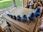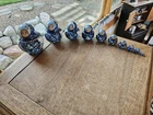 Set of Russian Nesting Dolls. Hand Painted. 10 dolls. The largest is approximately 4.5" tall. Nicely painted. The 4th from the smallest has a small wood chip on the side. See last photo. A great hard to find 10 doll nesting set.