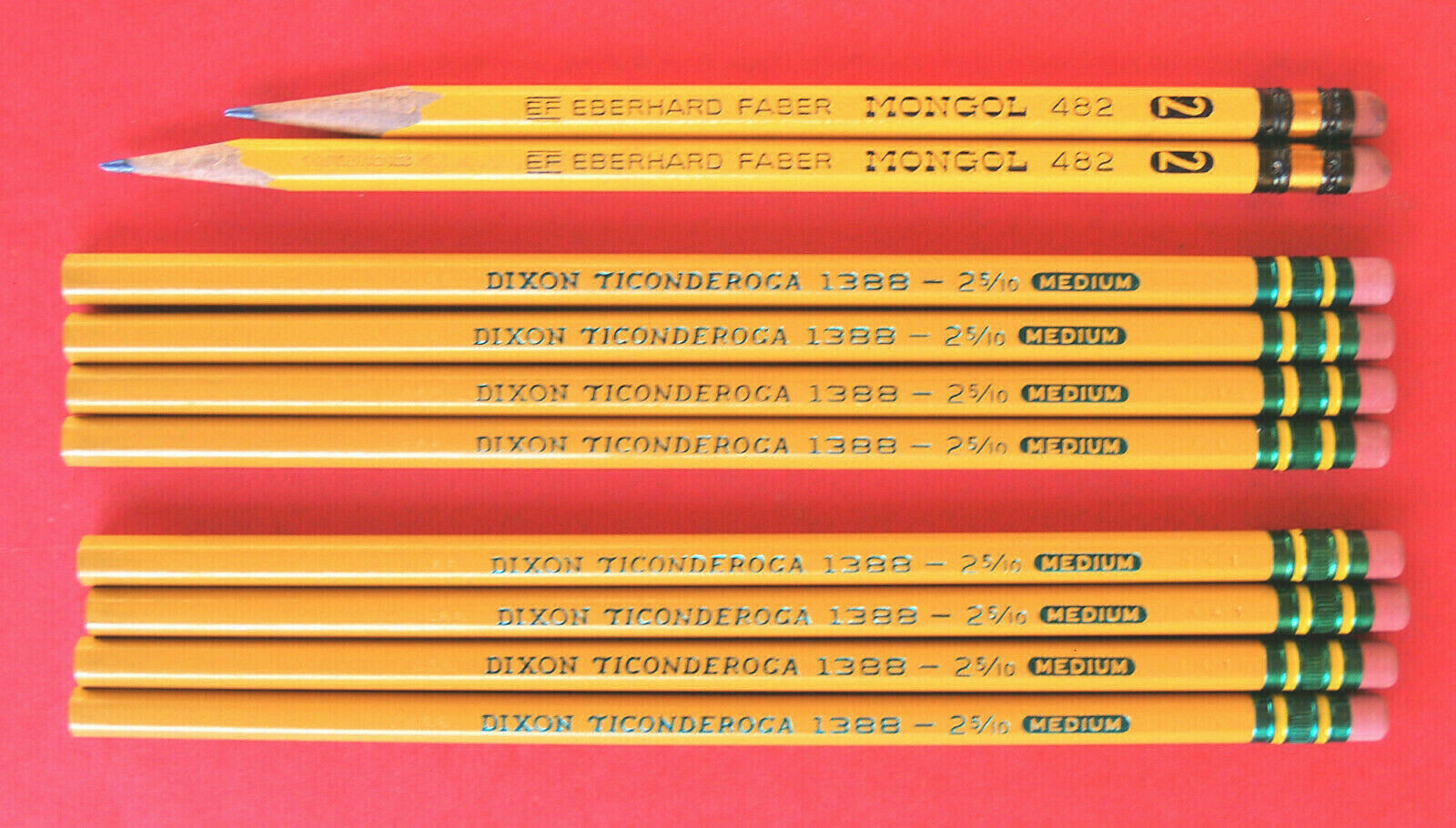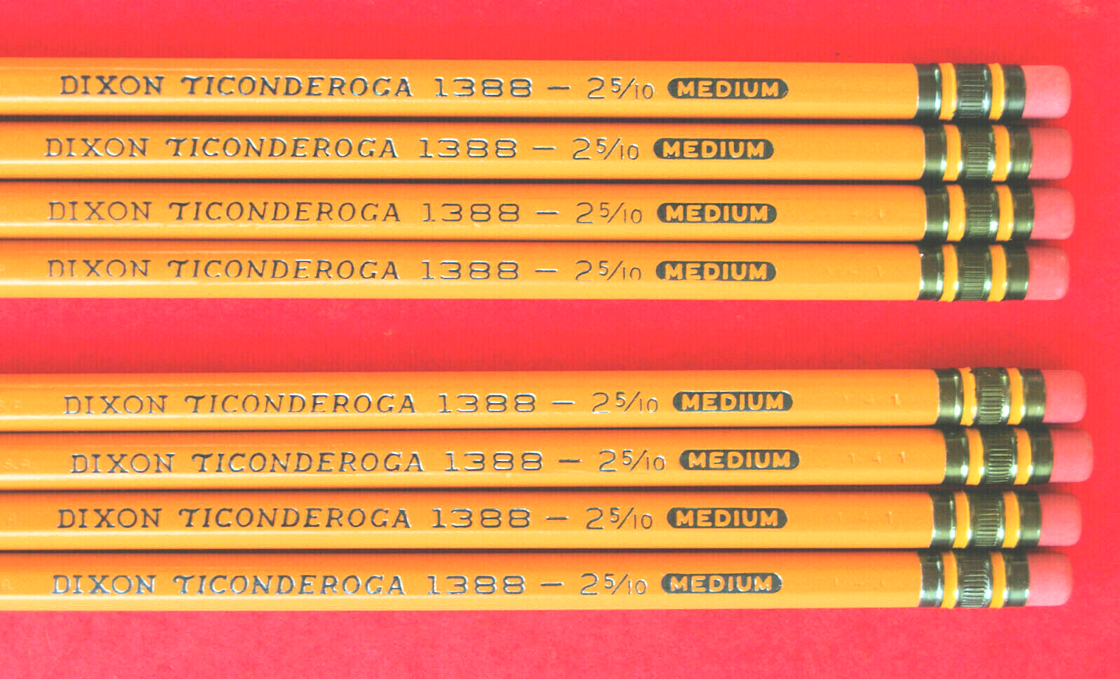 LOT 10 -- PENCILS Dixon Ticonderoga + Eberhard Faber Mongol . Metal Ferrules are intact 1. Dixon Ticonderoga 1388 2-5/10 8 Unsharpened - Open Box 2. Eberhard Faber Mongol 482 2 2 Sharpened, Slightly Used ~~~~~~~~~~~~~~~~~~~ . For Classroom - Home - Office VINTAGE . > TRUSTED EBAY SELLER SINCE 2003 > SHIPS ONLY TO USA & CANADA > . USPS GROUND ADVANTAGE - USA ONLY >PRIORITY MAIL ~ FAST SHIP OPTION - USA & CANADA ***************************************************************************************** > Shipping with Tracking - with Cardboard I nserts ~~~~~~~~~~~~~~~ . Lot 8 - Vintage - Dixon Ticonderoga 1388 # 2-5 / 10 - Medium -- NOT USED -- 8 Unsharpened -- Open Box -- Quality Writing Pencils . <> Features : - Pencils comes in open box . - Distinctive Yellow color - 6-sided pencil - NOT sharpened . - Metal ferrules are intact . - Approx. 7 1/2 inches long . -- With a rich history and legendary quality, the iconic Ticonderoga is the world's most recognized & trusted pencil. The Ticonderoga brand is designed to enhance the writing experience. . . 2. Lot 2 - Vintage - Eberhard Faber Mongol 482 2 -- Sharpened, Slightly Used -- 6-sided yellow pencil -- measures 7 1/4 to 6 1/2 inches long ~~~~~~~~~~~~~~~ CONDITION Purchased pencils for my classroom, but Never Used Ticonderoga items. Pencils resided in an indoor storage cabinet over these years. There may be some natural color aging in pencils. Some pencils have minor indent marks. Erasers may have dried out or become unusable, & may not erase. Package box has wear with clear tape affixed. Delightful pencils for writing or collecting ! . Generally, items or package also May Have some shelf storage wear, edge wear or indents, tape affixed, a bit of darkening or fading , & color rubbing wear - though this may not be apparent to view in 12 photos. . > There is no return for this Lot item. . PHOTO LIST PHOTOS 1 & 2 -- View of 10 Unused & Used pencils + Box. PHOTOS 3 thru 7 -- Close-up views showing markings + bottoms. PHOTOS 8 thru 12 -- Views of Box package. . ************************ **************************** PayPal Verified . Pay securely with a major credit card thru PayPal Our eBay store has BOTH PayPal & ID Verified Approval , providing buyer confidence. Items come from a smoke-free business. Only RC Aircraft items have a return or exchange policy. All other items sold AS IS: books, teaching resources, posters, & collectibles, etc. We ship after payment is received , & funds have cleared in 1-4 days thru PayPal. ~Please e-mail questions before BIDDING or BUYING ~We want to make sure you are satisfied with your purchase We've been proudly serving customers for 25+ years ~~Since we are not responsible for packages lost or damaged by USPS or other delivery services, shipping insurance may be considered for collectibles or more costly items. We Do Not Charge Any Handling Fees for our service. We will combine orders whenever possible to reduce your total shipping charges. Email us to request this combined cost . .