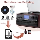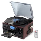 10 in 1 Bluetooth In/Out Record Player 3 Speed Vinyl Vintage Turntable CD Player Cassette AM/FM Radio 2 Built in Speaker USB/SD Recorder Aux-in RCA Line-Out 【10-in-1 Turntable】It is a multifunctional record player. Not only Vinly, it also supports CD, Cassette, USB, SD/MMC card play, AUX In music from external devices ,Bluetooth , Jackphone, it also can use as FM/AM radio, with RCA line out allows you to listen to music via your other speaker; It can meet your various requirements. 【Bluetooth In & Out】The record vinyl player has Bluetooth transitter and receiver. It can listen to any of your Bluetooth smart devices or quick matching and automatic connect to other external Bluetooth Speaker. It can't use both at the same time. 【Vinyl to MP3 Encoding】Featued with Multi-function recording function, supports convert Vinyl, CD, Cassette, Bluetooth, Aux in, FM/AM radio to USB flash drive/SD card directly in MP3 format. No PC or laptop required, easily digitize your favorite vinyl records to MP3. 【Built-in 2 high quality speakers】with amplifiers processing audio output, this wood record player sounds amazingly richer and louder without any distortion. Headphone jack makes you enjoy yourself in your music world.RCA line out could add your an amplifier or active speaker to improve the sound. 【3-Speed Vinyl Player】Comes with 45 RPM adapter, Three-speed Turntable (33, 45, 78 RPM) plays all of your 7" 10" 12" vinyl records .Automatically pause and stop, The auto-stop control design protect your vinyl when all the music ending. The dust cover prevents dust from accumulating on vinyl records.