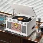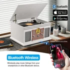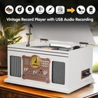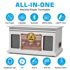 【10-in-1 Multi-Function Turntable】- With vintage looks on the outside & modern features inside. This vintage turntable not only plays your Vinyls, but also has a CD & cassette player, USB/TF recording & playback, AM/FM radio, Bluetooth, RCA out, and 3.5mm AUX in & headphone jack. 【Source Audio to Digital Format】- The USB/TF port is used for encoding and decoding, not only for audio playback, but also for converting vinyl, Bluetooth, tape, CD, AUX, AM/FM radio audio into digital format and saving it to a USB flash drive or TF card. 【Expanded Connectivity Options】- Extend the sound by connecting external speakers or an amplifier via the RCA Line outputs. For personal listening, plug your headphones into the headphone jack. The headphone jack can also output to other speakers via a 3.5mm auxiliary cable. 【Three-Speed Belt-Driven Turntable】- The vintage record player plays 3 sizes (7/10/12 inches) of records or albums at 3 speeds (33-1/3, 45,78 RPM). Built-in belt drive and spring dampening improve sound quality while protecting records by reducing vibration. Gear drive makes adjusting radio channels more accurate. 【All the Control You Need】- Features a volume adjustment knob, Record/delete button, Stop/USB/TF button, AM/FM switching button and tuning knob, open/close button for CD tray, eject switch for cassettes, and easy click buttons for power, play/pause/forward/rewind, program, repeat, etc - everything is right there.