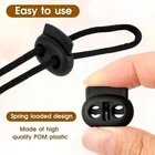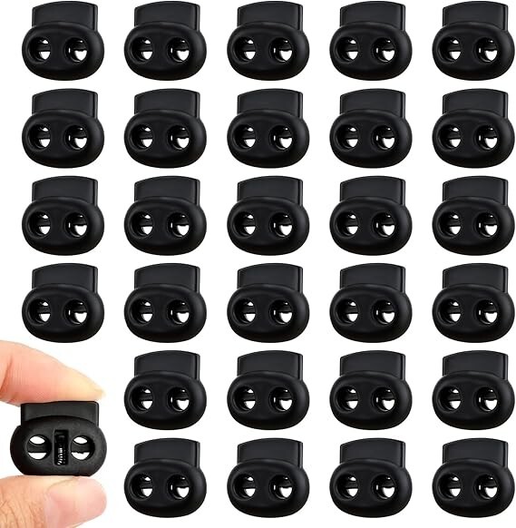 25 Pcs BRAND NEW Package Included : 25 Pack Cord Lock (the cord excluding) ,Outter Size : 22.5 x 21.5mm ,Hole Size : Just can Pass through Max up to 4.5~4.8mm Cord Ropes Cord Rope Lock Stopper Used for Make (DIY) mask Parts,The best gift is to make a mask for your family.Recommended for those who are having a shortage of masks! Ideal for handicrafts and handmade. Firm Grip ,With spring loaded design,can keep a firm grip on whatever the use is for, easy to install and use. Our cord locks are fit a variety of different drawstrings and types of cords. Widely used for shoelaces, pack drawstrings, pants closures, hoodies, lanyard, luggage, clothing, backpack, sportwear, tent, knitting needle stoppers,Knitting Stitches Holder, Paracord products and a variety of outdoor and gym products, For example, when used in marathon running shoes, sports shoes do not require to tie, just use lace lock, shoe lace tie locks Accessories. A plastic cord lock attaches to drawstrings and tightens without the use of knots.Toggles for drawstring allow mountaineers to fasten clothing and camping equipment quickly in cold conditions when the fingers are encased in heavy gloves. They consist generally of three parts: a barrel, a toggle, and a spring. Squeezed together, tension is released and the cord lock can move freely up and down the cords. Released, the tension is engaged and the cord lock stays in place. 10 Pcs INNOVATIVE DESIGN: This cord lock features a well-designed drawstring lock with a convenient spring mechanism, making installation and use a breeze. Simply pass the drawstring through the hole and the spring design ensures a firm grip on the rope or shoelaces, providing a reliable grip every time RELIABLE MATERIAL: Made of odorless plastic, our spring locks for drawstrings have a strong internal spring, making them durable and reliable. Lightweight yet sturdy, this well-made cord stopper is good for everyday use, ensuring long-lasting durability COMPREHENSIVE PACKAGE: This set contains 30 black cord locks, providing an ample supply to meet a variety of needs. The classic black hue matches any project seamlessly, allowing you to easily handle multiple applications. USER-FRIENDLY: These shoelace locks are designed to be convenient and very simple to use. Simply slide them onto the rope and adjust to the desired length. These efficient cord locks provide a hassle-free experience, simplify your tasks and make your life easier WIDE USE: Due to its compact size, this drawstring clip is good for travel and storage. Suitable for securing masks, outdoor hats, backpacks, shoelaces, tents, clothes, sneakers, and more. Additionally, these cord locks are suitable for DIY crafts, making them a versatile addition to any tool kit