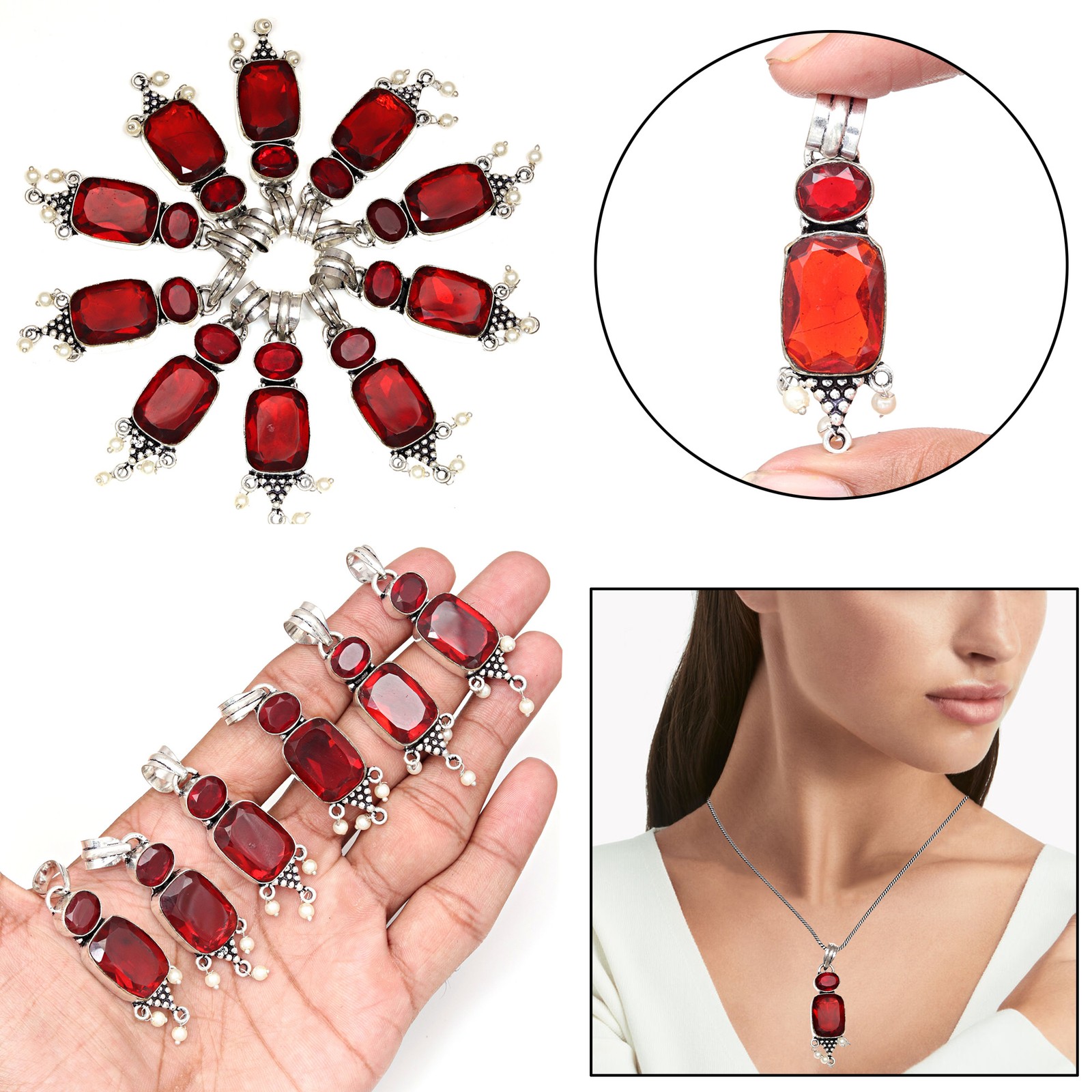 10 pcs Citrine Topaz Pearl Gemstone Unisex Women's Silver Jewelry Pendant