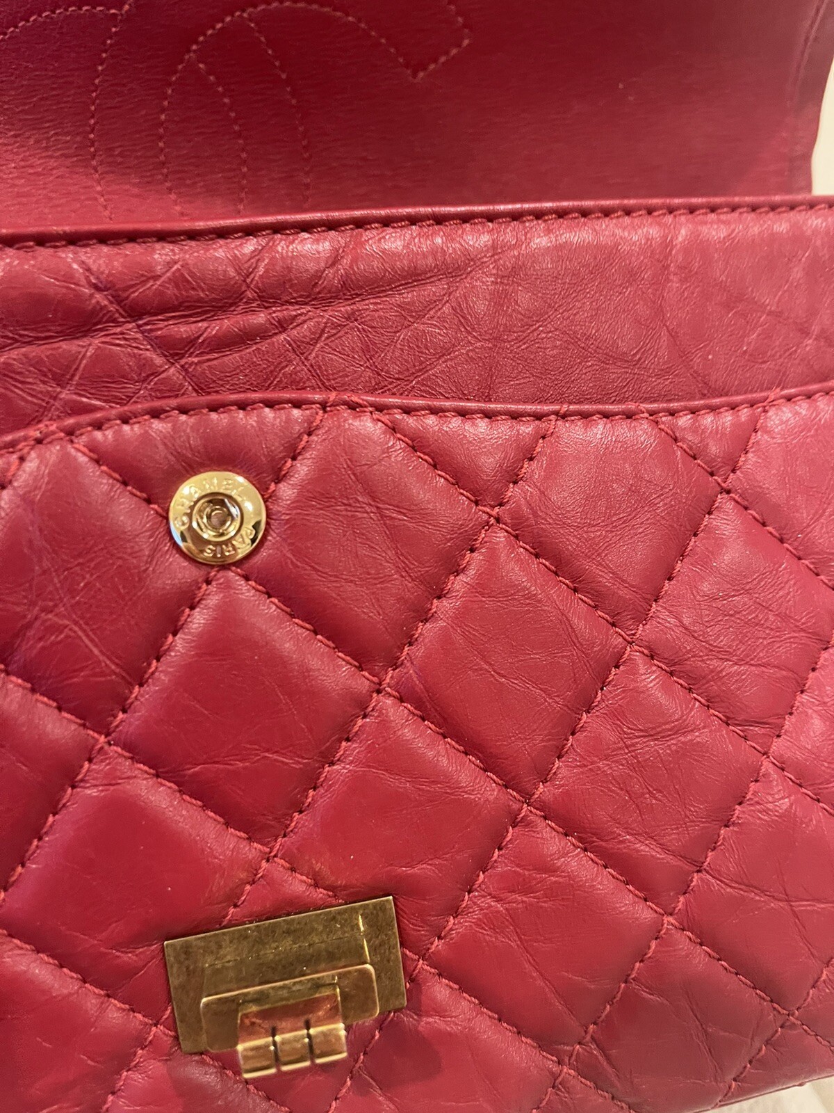 Chanel Reissued 225 Aged Calfskin Double Flap. In red color hard to find with gold tarnish and look brand new only use 4x times and always in dust bag Include dust bag and no authenticity card