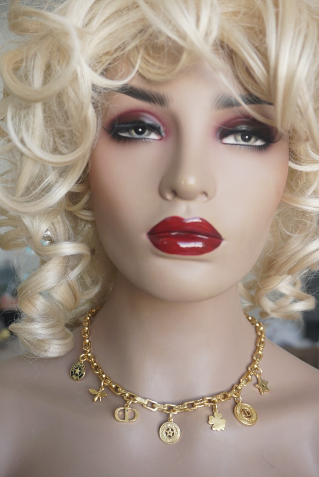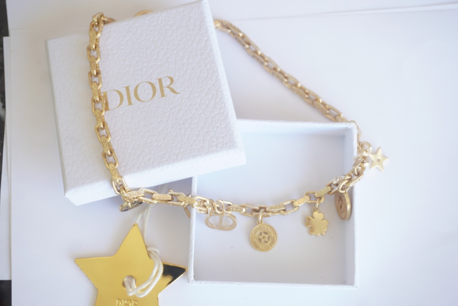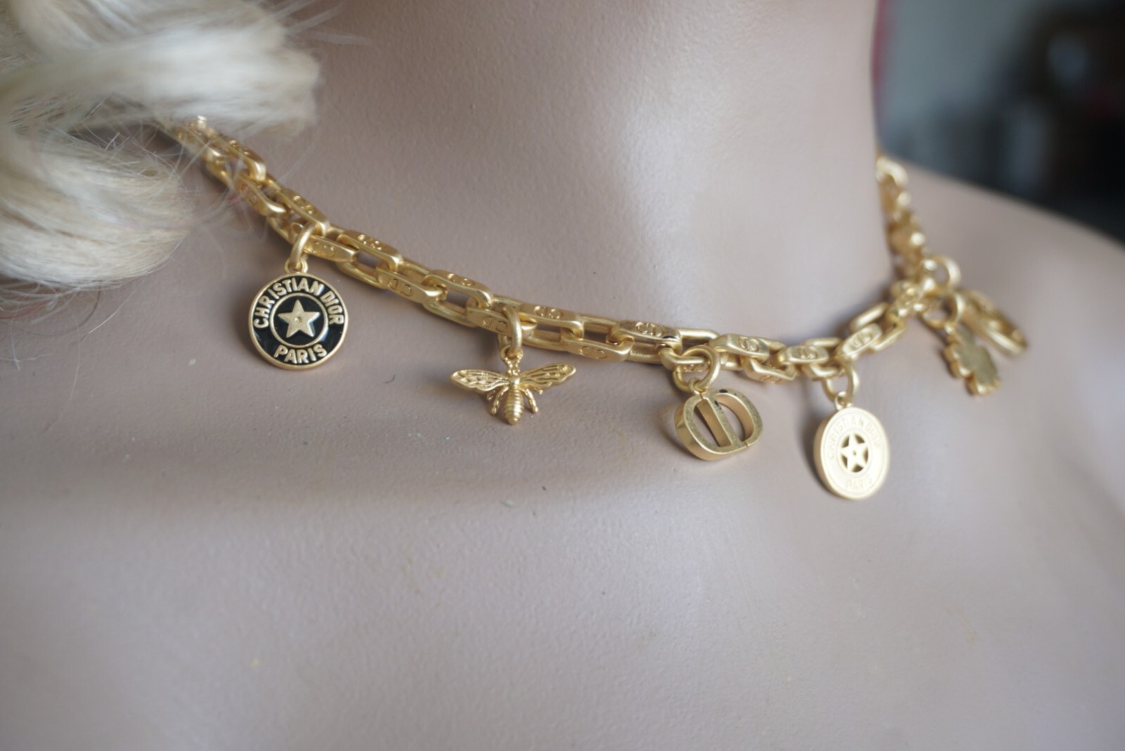 100% Christian DIOR Necklace. Logo CD Signature & box & dust bag Color: gold / black