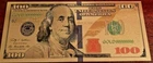 24 K GOLD Plated Double Sided novelty bill. $100 Dollar Bill with Green Seal, & blue line security feature . Just like the real thing, but not. GOLD BANKNOTE 999 PURE 24K DOLLAR BILL US CURRENCY. These notes are manufactured by pressing real .999 Fine gold leaf onto a poly carbonate sheet. These are not us tender but contains a lot of value as a collector and trading item since they are made with real gold and only a limited number were produced. BILL DOES NOT HAVE ANY MONETARY VALUE. Any Offers made and accepted come with a BCW Deluxe semi Rigid Currency Sleeve Thanks for looking