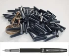 ( you won't receive the pen, just the ink cartridges) The auction is for 100 high quality, snap-in ink cartridges in BLACK They'll definitely fit your Pelikan Jazz pen pen. (Their shelf life is up to three years) (please read the article below if you'd like to make them last a lot longer) Almost forever. -------------- The ink is both acid free and archival safe It dries quickly and doesn't smear when gotten wet It is non toxic and pH neutral Lightfast and waterbased It won't damage your pen under any circumstances FREE SHIPPING Please allow about 10-12 days for the delivery. A tracking number uploaded in 1-2 days. Satisfaction guaranteed Not happy? Please return them for a full refund. NO QUESTIONS ASKED ___________ Below is some interesting information about ink cartridges in general (their longevity) Inks are water solutions and cartridges are made of what seems to be polyethylene. Over a period of years, water molecules will migrate through the walls of the cartridge--it has nothing to do with whether the cartridge is sealed properly or not--it will happen anyway. This situation is roughly analogous to a balloon filled with air. After several days, air leaks through the rubber, no matter how well it is sealed. The bottom line is that cartridges have a shelf-life on the order of years. They should be fine for about 3 years or so at room temperature. They can last much longer at lower temperatures, but don't allow them to freeze--the water will expand and possibly break the cartridge. In theory, a way to make cartridges last *almost* indefinitely, would be to store them in a jar filled with water. This would *essentially* keep the water inside the cartridge in equilibrium with the water outside--i.e. about as much water would leak in as would leak out. The reason that I said *almost* is that there is a very weak force of osmosis at work. This is because there is a difference in the concentration of molecules dissolved inside the cartridge (i.e. the ink and small amounts of other additives) and outside, where there is nothing dissolved). This force will very slowly pull water into the cartridge as the exact concentrations attempt to reach equilibrium (this is the principal of dialysis). However, we are now talking about a process that would take perhaps decades. Also in theory, if the water in the bottle had the exact concentration of large molecules as inside the cartridge, the cartridge would last more than a lifetime. Chemistry in (very slow) action.