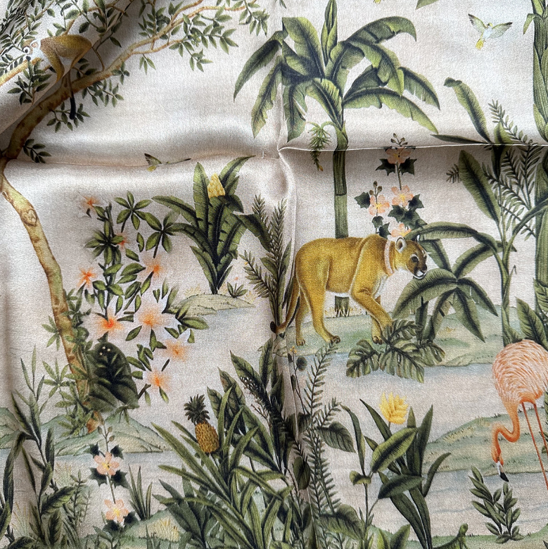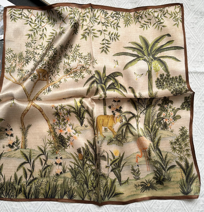 $ 6.18100% Mulberry Silk 20" Square Scarf Women Neckerchief Wrap Green Jungle Print
