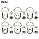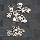 Features 1、Superb technology bring smooth edges, surface plating treatment helps to anti‑rust, anti‑corrosion 2、Made of high class brass material of good quality, which is sturdy and durable 3、Shoelace hook is easy to install and use without other special requirement 4、Eyelet buckle rivet is basic accessories for making high‑quality shoes, leather, bags, etc. 5、Perfect for replacing worn rivet by yourself, saving money and you can enjoy the fun of repairment at the meantime Specification Item Type: Shoelace Hook Specifications: 100 x Shoelace hook, 100 x rivet, 100 x button cover Material: Brass Uses: Basic accessories of shoes, leather, bags, etc. Size: Approx. 9 x 14mm / 0.4 x 0.6in Approx. 4mm / 0.2in Approx. 10mm / 0.4in Approx. 11mm / 0.4in Color: Silver Package List