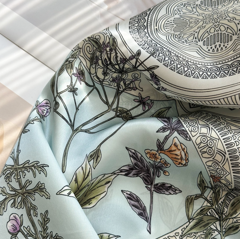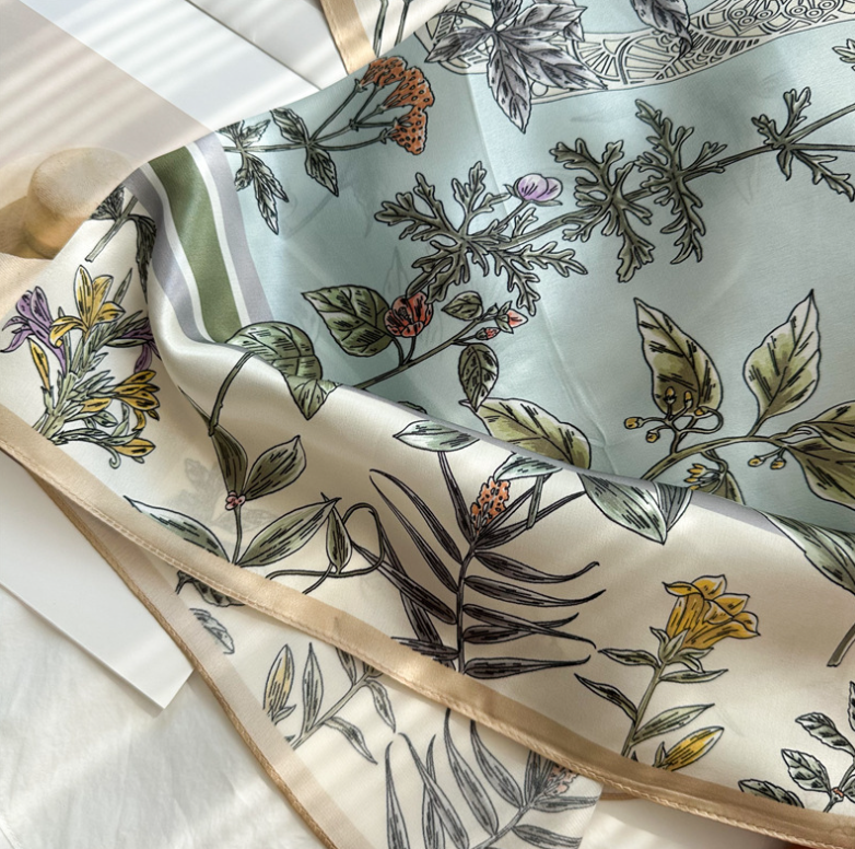 100%Silk 14 Momme 35" Square Scarf Women Neckerchief Wrap Kerchief Bandana Lotus