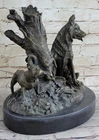 100% Solid Bronze Sculpture Statue Hunting Dogs English Bulldog Shepherd DEAL 100% Solid Bronze Sculpture Statue Hunting Dogs English Bulldog Shepherd DEAL Condition : This sculpture is in perfect condition. Bronze Dimensions with Marble Base: Height 12" X Width 12" Marble Dimensions: Diameter 12" Height without base:11" Weight:25 LBS Inventory:84Y4105248 Immerse yourself in the intensity of the hunt with this captivating bronze sculpture featuring two formidable hunting dogs, a Pitbull and a German Shepherd. Positioned next to a lifeless rabbit and bird, these loyal companions gaze ahead with unwavering focus, ready to execute their owner's command. The scene is set amidst a forest, skillfully portrayed through the inclusion of a tree stump and branches, lending a sense of atmosphere to this remarkable piece. Crafted with meticulous attention to detail, this sculpture exemplifies the artistry of the skilled artisan. Through the ancient technique of lost wax casting, employed for thousands of years, every intricate aspect of the piece is brought to life. From the texture of the creatures' fur and feathers to the nuanced expressions on the dogs' faces, this sculpture is a testament to the beauty and precision that can be achieved through this timeless method. Whether you are a hunter yourself or an animal lover, this exquisite bronze sculpture is a fitting addition to your business or home. It serves as a tribute to the strength, loyalty, and instinctual prowess of hunting dogs. With its grace and beauty, this sculpture makes an exceptional gift for those who appreciate the bond between humans and their animal companions, and the thrill of the chase. HUNTING DOGS ENGLISH BULLDOG SHEPHERD BRONZE SCULPTURE FIGURINE MARBLE BASE DECO www.bronzhaus.com Video will open in a new window Using the eBay App? Paste link into a browser window: [isdntekvideo] Shipping Terms : Most of our items are shipped via USPS (United States Postal Service) mail or UPS. Most orders are shipped within 24-48 hours of purchase. Please be aware that not all items are available for USPS shipping due to size and weight. We do ship to Hawaii, Alaska, Canada, Puerto Rico, APO/AE, and U.S. Virgin Islands, however, an additional charge may be required. Please contact us before making any purchases in these areas. For Non-USA customers, you may be responsible for all duty, tax, brokerage fees that may be due upon delivery (shipping costs cover freight charges only). We also ship internationally. Please refer to the "Shipping and Handling" chart for the rates for each area. Payment : We accept just about any form of payment. PayPal, Master Card, Visa or American Express credit cards. Money orders, cashiers checks, and even personal or business checks. For governmental institutions, we will also accept a purchase order. Please understand that for personal or business checks we have to wait for the check to clear (usually 7 days) before shipping. Condition : New Detailed Hand Crafted Hot Cast Bronze Satisfaction Guaranteed. This is Stock Photo, Slight Color Variation!! Listing and template services provided by inkFrog