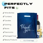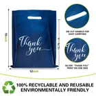 ELEVATE YOUR BRAND: Show off your good taste with 12X15 inch stylish & roomy merchandise bags perfect for products, crafts, party favors, & thank you gifts for birthdays, showers & events. 100 blue gift bags with silver thank you logo printed on one side PROVIDES UNBEATABLE STRENGTH: Unlike other thank you gift bags that are thin & stretch easily, our 2.36 mil heavy-duty boutique bags offer more durability & capacity than ordinary plastic bags for small business. Ideal for small business & personal use CARRY WITH EASE: Make shopping a breeze with tear-resistant thank you retail bags with handles. With die cut handles & a non-gusseted bottom design, our bulk plastic gift bags for small business won’t stretch or rip, even when filled to the brim PACK MORE IN EVERY BAG: Our large packaging bags are versatile & strong enough for packing t-shirts, clothing, salon products, tumblers, bottles, books, shoes, promotional items, giveaways, groceries, treats, samples, & teacher, party, and birthday gifts REUSE & REDUCE WASTE: Our reusable shopping bags for business small are 100% recyclable helping to protect the environment & promote sustainability. Perfect small business supplies for vendor events, fundraisers, retailers & shopping store owners