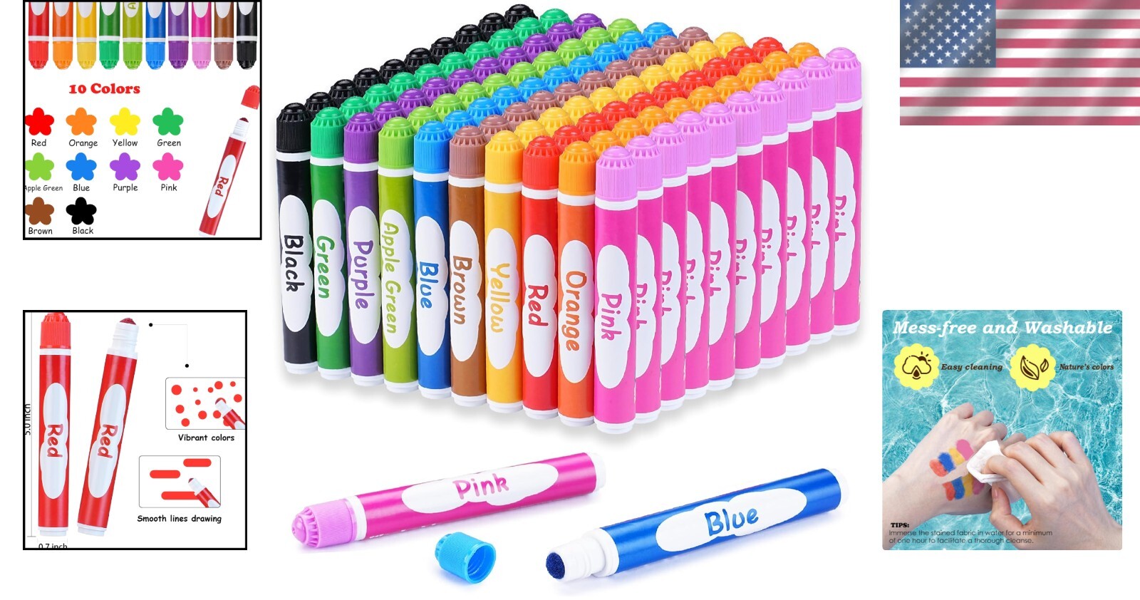100 Pack Washable Dot Markers - 10 Vibrant Colors for Toddlers' Creativity ‹ › ‹ › ‹ › ‹ › ‹ › ‹ › ‹ › ‹ › 100 Pack Washable Dot Markers - 10 Vibrant Colors for Toddlers' Creativity Features: Includes 10 vibrant colors, each with 12 ml of easy-to-use ink, providing endless artistic possibilities. Non-toxic and acid-free ink ensures safety for children, conforming to ASTM-D4236 standards. Mess-free and washable, easily cleans off hands, clothes, and surfaces with a water-based formula. Lightweight and designed for small hands, providing an effortless grip for toddlers. Facilitates development of crucial skills like shape and color recognition, hand-eye coordination, and memory retention. Benefits: Encourages creativity and expression in young artists. Safe for children to use with confidence. Quick clean-up means more time for fun and less stress for caregivers. Perfect for home, classroom projects, or as a thoughtful gift option. Enhances engagement in educational activities while promoting imaginative play. Why Choose Our Washable Dot Markers? Your little ones deserve the best when it comes to expressing their creativity. Our Washable Dot Markers offer a vibrant palette that brings their artistic visions to life. With safety in mind, these markers are non-toxic and comfortable for small hands. The washable formula ensures a mess-free experience, allowing toddlers to focus on creating without the worry of stains. Make every art time an adventure with the joy of color and discovery. Choose our dot markers for an exciting, safe, and educational art experience for your child! Important Safety Notice: WARNING: CHOKING HAZARD - Packing bag. To avoid the danger of suffocation, keep this plastic bag away from babies and children. Do not use this bag in cribs, beds, carriages, or playpens. This bag is not a toy. Shipping Free & Fast Shipping - We offer free shipping to most of the USA with a normal delivery time of 3-7 days. However, due to the current situation, additional delivery time (up to 3 weeks) may be required for some items. Alternative Carriers - We may use alternative carriers (e.g. USPS, FedEx, UPS, etc.) to ensure your package arrives safely and on time. Due to the use of multiple carriers, we are unable to provide a tracking number automatically. Handling Time - Orders are processed and shipped within 1-2 business days of receiving cleared payment. Shipping Restrictions - Shipping to Alaska, Hawaii, Puerto Rico, Guam, and other US territories may incur shipping charges or delivery restrictions. Please contact us before ordering, or your order can be refunded/cancelled. State Restrictions - There may be restrictions based on your state of purchase. For example, certain items may not be shipped to California due to state regulations. Contact for Tracking Updates - If you require tracking updates or have any concerns about the delivery of your order, please feel free to contact us, and we will be happy to assist you. Return 30-Day Hassle-Free Returns - We want you to be completely satisfied with your purchase. If you are not, you can return the item within 30 days of receiving it for a full refund or exchange. Easy Return Process - To start a return, simply contact us and we will provide you with a prepaid return shipping label and detailed instructions. Restocking Fee - There are no restocking fees for returns. However, the buyer is responsible for return shipping costs if the return is not due to a seller's error. Refund Processing Time - Refunds will be processed within 5 business days of receiving the returned item in its condition. Payment We accept all major credit cards, PayPal, and Apple Pay for your convenience. Your payment information is secure and encrypted to ensure a safe and seamless transaction. Please complete your payment within 3 days of purchase to avoid any delays in shipping. Feedback Your feedback is extremely important to us. We strive to provide the best products and customer service possible. If you are satisfied with your purchase, please take a moment to leave us a positive review. If you have any concerns or issues with your order, please contact us before leaving negative feedback. We are committed to resolving any problems and ensuring your satisfaction. Contact Us If you have any questions or concerns, please feel free to out to our customer support team. You can contact us through the eBay messaging system. We are available Monday to Friday, 9:00 am to 5:00 pm EST, and we will do our best to respond to your inquiry within 24 hours. Buy it now and enjoy a pleasant shopping experience! Model: Dot Markers for Kids MPN: Dot_Markers_for_Kids Unit Quantity: 100 Type: Dot Markers Color: Multicolor Finish: Solid Unit Type: lb