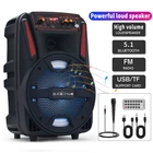 Specification: 8” BIuetooth LED Speaker with USB & TF Card Reader - 100wattsRMS @1.0%THD@3ohms - 1000 watts peak power - Built-in rechargeable battery offers 3 hours of continuous music playing - ABS Plastic Face & Rugged perforated grill for extra protection - Woofer: 8 LED woofer - LED Power Switch - Inputs: USB flash driveTF Card, AUX & Bluetooth’ - 1/4” microphone input with separate microphone volume control - Built in LCD screen with playback controls - USB & TF Card maximum size: 16GB - Plays .mp3, .wma & .wav files from USB drives and TF Cards - Bluetooth compatibility allows for wireless connection to any A2DP - stereo Bluetooth device - Bluetooth Range: 32 Feet - Echo & Volume controls - Top carry handles - Sensitivity: 95 ± 2dB(1 W@1 M) rechargeable battery should be fully charged prior to its initial use 8-10 hour Features: Smooth Bluetooth Connection: Allows you to stream your favorite music straight from your smartphone,iPod, tablet or any other suitable BT device within 10M/32 feet. Just move about and keep the music going with no cable and no hassle. Additional Audio Sources: when Bluetooth device isn’t available, you can pop into a flash disk or micro SD TF card, or connect to your 3.5mm audio device like MP3/MP4/5 player, etc. to play your favorite tunes. Equipped with a built-in FM tuner module, you can tune into local radio stations to access a variety of information, including news, music, and weather forecasts. Portable & Rechargeable Designed: Built-inrechargeable battery offers up to 5 hours of playtime at medium volume,with heavy-duty top handle and telescopic carrying handle, you’re free to take this speaker anywhere you go and throw up a party. Easy to Operate: With an intuitive user interface and straightforward operation process, it is suitable for users of all ages." Package Contents: 1 × Wireless Party Speaker 1 × Remote 1 × Power Adapter 1 × User Manual 1 × Microphone