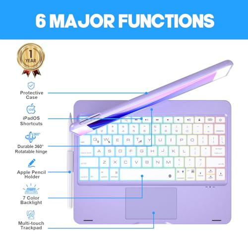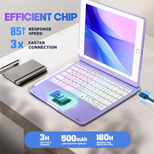 Return Policy Fast Delivery Trusted seller iPad 9th Generation Case with Keyboard 10.2" (2021), 360° Rotatable with Trackpad & Rainbow Backlit, iPad Keyboard case for 9th/8th/7th, iPad Air 3, iPad Pro 10.5 (Metallic Purple) Product Description 【Compatibility】This keyboard case is compatible with iPad 9th Generation 10.2-inch 2021(A2602/A2603/A2604/A2605); iPad 8th Generation 10.2-inch 2020(A2270/A2428/A2429/A2430); iPad 7th Generation 10.2-inch 2019(A2197/A2200/A2198); iPad Air 3rd Generation 10.5-inch 2019(A2152/A2123/A2153/A2154), iPad Pro 10.5-inch 2017(A1701/A1709/A1852). 【Multiple Viewing Angles】iPad 9th generation case with keyboard supports 360° rotation and 0-180° flip, effortlessly adjusting to the most comfortable viewing angle. Whether you're a professional, a writer, or frequent traveler, our iPad 9th generation case with keyboard is designed to meet your needs 【Multi-touch Trackpad】This 9th generation iPad case with keyboard features a large multi-touch trackpad for convenient navigation and flexible gesture control. Enjoy browsing, designing, or drafting with unparalleled convenience. You don't need to to manually swipe the iPad screen 【Premium Hardshell Protection】iPad keyboard 9th generation provides premium hardshell protection with durable ABS material. Keep your iPad 9th generation safe and protect the edge of iPad from scratches, dust and wear. Precision cutouts provide full access to all ports. The auto sleep/wake mode conserves battery life and protects your privacy 【Comfortable Typing Experience】With a built-in 500mAh large battery and efficient chip, keyboard for iPad 9th generation delivers 3x faster connection - giving you a comfortable, accurate, smooth typing experience! Fast charging with the included Type-C charging cable, it can be fully charged in just 3 hours 【Adjustable Rainbow Backlight & 3 Brightness Levels】iPad 8th generation case with keyboard has a vibrant rainbow backlight, illuminated typing is convenient even in low light environment. iPad 7th generation case with keyboard has 3 brightness levels and 2 backlight modes adjustment, you can customize the most comfortable backlight to suit you preference 【Exceptional Service】 Only replace, not repair within 1 year. Enjoy our exceptional service with iPad 9th Generation Case with Keyboard. If you have any questions, just reach out to us for a prompt response within 12 working hours. You will get: 1 x iPad 10.2 case with keyboard(9th/8th/7th) / iPad Pro 10.5 inch case with keyboard / iPad Air 3rd generation case with keyboard, 1 x Type-C charging cable, and 1 x User Manual. Note: iPad and Pen are not included Shipping Returns Payment Shipping Shipping is FREE to all addresses other than APO/PO boxes in the lower 48 states. All our stock ships from US-based warehouses. Shipped via USPS or UPS (depending on location and package weight) Unless stated otherwise, all orders will ship within 24-72 hours of your payment being processed. Check our feedback to see the great reviews of FAST shipping we offer. Returns Seller does not accept returns Payment We currently accept payment via eBay managed payments only. Once payment is cleared, we will dispatch your shipment within 1-3 business days. Please refer to the "Shipping" tab for more information regarding shipping speed to your destination.