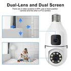 Features: 1.Support infrared night vision. 2.Support 2.4G WIFI. 3.Newest upgraded dual lens. 4.Support motion detection alarm. 5. Support panning 355°/tilting 90°. 6.Support remote view/photo/recording. 7. Support TF card storage or cloud storage. 8. IR LED distance is 8-12 metres. 9. Support auto-tracking and alarm tone function. 10.Support two-way voice call in real time. Specification: Product name: WiFi camera. Camera type: bulb Camera lens pixel: 5MP Camera lens: 3.6mm. Waterproof rating: IP66. Sensor: CMOS. Cloud storage: subscription required. Number of light beads: 4 IR + 4 white light. Full colour night vision: 8-12m Support network: P2P mode, 2.4Ghz wireless. Memory Expansion: 128GB micro SD card (not included). Rotation Angle: 355°(Horizontal)/90°(Vertical). IR Night Vision: Support. Motion Detection: Support. Alarm Push: Support. People Detection: Support. Apps: v360pro. Compatible devices: Android/ios. Operating Power: 110-240V. Base Type: E27 . Product size: 150*68*27mm. Product material: ABS. Product colour: white. Package List: 1*Light bulb camera (SD card not included) 1*E27 base 1* User manual 1* Screw kit Attention: 1.According to the light colour may vary! 2.Due to manual measurement, please allow a slight 1cm difference! 3. Thank you for your understanding and attention, wish you have a pleasant shopping experience! On Jan 26, 2025 at 17:02:24 PST, seller added the following information: