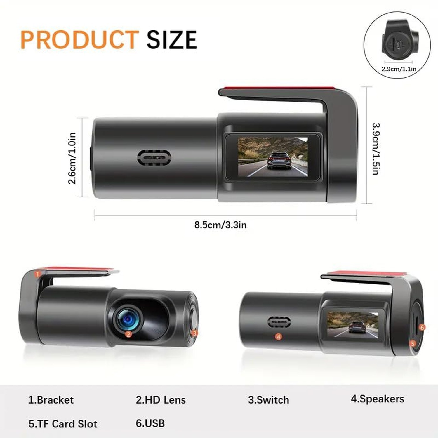Dash Cam, 1080P Front Dashcam, WiFi Dash Camera for Cars with App, Night Vision, G-Sensor, Loop Recording, 24H Parking Mode, Support 64GB Max Product Details Brand: Redmaple Orientation: Front Vehicle Service Type: Car, Truck Connectivity Technology: Wi-Fi, USB Special Feature: Loop Recording, Built-In WiFi, Parking Monitor, Night Vision, App Control Video Capture Resolution: 1080p Included Components: User Manual, Wireless Car Dash cam, Connecting cable Mounting Type: Dashboard Mount Color: Black Field Of View: 1.2E+2 Degrees Product Dimensions: 0.79 x 0.39 x 0.39 inches Item Weight: 6.6 ounces Connectivity technologies: Wi-Fi, USB Special features: Loop Recording, Built-In WiFi, Parking Monitor, Night Vision, App Control Other display features: Wireless Color: Black Whats in the box: User Manual, Wireless Car Dash cam, Connecting cable Manufacturer: Redmaple Country of Origin: China Date First Available: April 9, 2024 FHD 1080P Dash CamRecording FHD 1920*1080 25fps video with advanced GC CMOS + 120 wide angle + lens, clearly capture the license plates as well as road signs during the day and night. Perfect mini dash camera for cars, truck, SUV, provides the most important evidence for car accidents Built-in 2.4G WiFi & APP ControlThis 1080P dash camera comes with Free App track gps data, change settings, edit and share your footage simple. Videos can be shared to YouTube, Twitter, Facebook, or the social media platform of your choice with the tap of a finger Compact & Super Easy to InstallWith slim and compact design , the dashcam takes up tiny space in your car, which won't obstruct your vision while driving. And simple installation and set up with excellent instructions included, no need to worry even for a first time user Seamless Loop Recording & G-sensorThe dash cam features seamless loop recording, automatically overwriting the oldest videos with the latest ones when the memory card is full. Additionally, the G-sensor triggers the front camera to detect sudden vibrations and locks the video, preventing it from being overwritten 24 Hours Parking ModeUSB hardwire kit is required for this function. This dashcam will auto switch to parking mode while your car is parked. Collision detection or buffered motion sensor can be triggered by impact or movement, low bitrate or low frame rate mode keeps recording continuously with low power consumption. Which protects your vehicle from hit and runs and theft attempts, with emergency videos saved to a separate locked folder Heat- Resistant & 64gb Max SupportMade of the high quality PC and ABS materials, with high heat resistance chipset and adhesive pad, dashcam front camera can work fine and stay attached to windshield even on hot sun. Supports Micro TF up to 64GB C10 or above(Please note that this product does not include a memory card, if you need to save the video from your car recorder to your mobile phone, you will need to insert a compatible memory card)