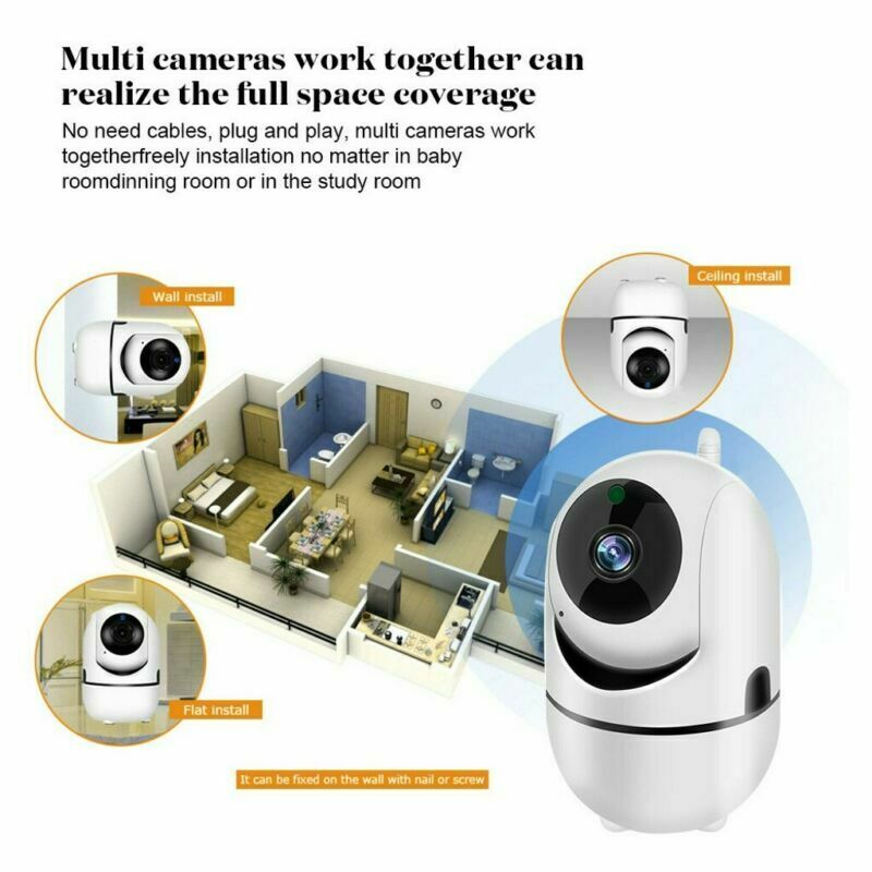 1080P WiFi IP Security Camera Wireless Indoor CCTV Smart Home Baby Pet Monitor Description Features: 1.Two-way audio:Real time intercom,built-in microphone and speaker,instantly share the wonderful moments in your life 2.Motion detection alarm: Record and push the alarm message to the phone. 3.Share device:Supports up to 5 accounts to share device information 4.IR Night Vision:6 pcs Infrared lamps night vision lighting, night vision 10 meters(IR-CUT automatic switching) 5.Multiple encryption: Video encryption and Account encryption to protect your privacy. 6.Video playback:Support mobile client video playback, view the information you want at any time 7.Multi-platform viewing:support Phone and PC live view. 8.Support MAX 128GB Memory Card and Cloud Storage 9.PTZ Rotation Control without any blind area:Rotation horizontal 355,vertical 90,support up/down/left/right remotely control,see anywhere you want. Specifications: Product model:EC80-V13 Processor:T21L+SP140A Platform:360eyes.club Image sensor:1/4 HD CMOS 1 megapixel CMOS sensor Manual video format:MP4(1280*720P, storage in mobile) Video compression standard:H.264(Storge in TF card ) Video playback mode:Mobile client Built in lens:3.6MM Focusing method:Manual Support multiple protocols:TCP/UDP,IP,HTTP,SMTP,DHCP,DDNS,UPNP,NTP Wifi:Support IEEE 802.11b/g/n Supply voltage:DC 5V/1.6A Working temperature:0℃ ~ +60℃ Product size:6.9*6.9*10.2cm Package Included: 1 x IP Camera 1 x Color Box 1 x Screw package 1 x Power Supply 1 x Base buckle 1 x Instruction manual Cannot Connect To WIFI Successfully? 1.Please make sure the WIFI Password is correct.(Our Camera Only Support 2.4Ghz Wifi) 2.Please make sure the router signal is stable (place IP Camera close to your router for first connection is Recommended).The Camera will not work on a 5Ghz wireless standard at this time. If you have a dual-band router, be sure to segregate your wireless channels and connect the Camera to the 2.4ghz channel. 3.Please check that your wifi name and password do not have special symbols, our camera can only recognize English letters and numbers.. Reset Check The IP Camera: please make sure the IP Camera send Waiting for connection message after the plug. If not, we need to reset the Camera. 1.Why Reset: Reset is used to boost the IP Camera system, which become more efficient to accept the unknown router and connect it. Reset will erase all user settings including WIFI information, access password, alarm information, arming zones information. 2.The Steps: Find the reset hole at the bottom of the device, and then use needle to insert it, press it more more than three seconds after hearing "di" sound, when hearing 'Reset to be defaulted setting' sound, then camera reset successfully. 3.After the reset, user can start to connect it by WIFI. FAQ -Cloud Storage Wifi Camera 1)Have to buy cloud storage service? This camera has cloud storage and ordinary card storage capabilities, do not want to buy cloud storage, you can insert a sd card for recordings. 2)What can we do when the camera be stolen? Do not worry,camera with cloud storage capabilities, video stored in the cloud server, the camera was stolen, the videos can be found by cloud storage account. 3)Does cloud storage camera can support recording for SD Card and cloud storage at the same time? Yes. Support SD Card and cloud storage recordings at the same time if you put SD Card and purchase cloud storage service Payment Shipping Returns Contact Us 1.We accept PayPal only. 2.All major credit cards are accepted through secure payment processor PayPal. 3.Payment must be received within 7 business days of auction closing. 4.We ship to your eBay or Paypal address. Please make sure your eBay and Paypal address is correct before you pay. 1.We ship to your eBay or Paypal address. Please make sure your eBay and Paypal address is correct before you pay. 2.Items will be shipped within 1-3 business day when we received payment. 3.Delivery time depends on destination and other factors; 1.We stand behind our items and offer 30 days warranty. All items are in new and working condition unless specified otherwise elsewhere in the description. 2.All Returns - defective or otherwise - MUST BE PREAUTHORIZED to guarantee refund or exchange. Please contact us to get an authorization and return address. 3.Buyer agrees to pay for the cost of re-shipment for undeliverable or wrong addresses. 4.Buyer is responsible for Return Postage as well as a 20% restocking fee if return/replacement is not a result of our mistake such as wrong item. 5.Replacement or Refund will be made upon receipt of the returned item. Please include tracking number so we can process ASAP. If you do not wish to wait for a replacement, please repurchase the item. 6.ALL REFUNDS will be processed via PayPal. Please double check via PayPal history and transaction for confirmation. PayPal will send it back to whatever you used to pay within 3-5 days. Please do not hesitate to CONTACT US. You can message 24/7 on eBay for all questions and inquiries. We will get back to you within 1-2 business days at the latest.