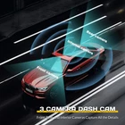 A- Car Dash Cam Feature: 【 Three Channel Dash Cam 】This 3 Channel Car DVR is equipped with a 170° front camera, a 110°in-car camera, and a 110°rear camera, capturing video in front of, behind and inside the car simultaneously, provides you with highly-detailed recordings of both the interior of the car and the road ahead, and always keeps you informed of the road status behind. 【 Full HD 108 0P Resolution 】Dash Cam Car Recorder deliver 1920x1080P front video + 1280x720P cabin inside video and 1280x720P rear video, provide all in clear and sharp videos quality, you can easily switch between the front, inside, and rear cameras to view different angles of the vehicle. 【 WiFi & Smart App Control 】Easily connect the front and rear dash cam to your smartphone via WiFi and control everything through the app. Compatible with both iOS and Android, this dash cam allows you to view, playback, and download recordings seamlessly. 【 24 Hours Park i ng Monitoring 】Car Dash Camera uses infrared lighting to capture an accurate image any time of day or night. The parking monitor function allows the camera to start recording automatically once it detects motions and save the recording as a special file to avoid being overwritten, better protecting your property. 【 Loop Recording 】 When this feature is turned on, the memory card is full and the oldest video will be overwritten by the newly recorded video. 【 Motion Det ection 】 With the motion detection function is enabled, when the Car DVR detects a moving object, it will automatically start recording video. When there is no moving object, it will stop recording and detect the moving object again. 【 Easy T o I nstall 】Simple plug and play operation, wipe the windshield clean and then choose the suitable place for installation. Plug the cigarette lighter into the socket and then start the dash cam. Specifications: Pixel: Front 1080P/ interior 720P/ Rear 720P. Display Screen: 2.0 inch IPS Screen Angle of View: 170 Degrees WIFI: Support Loop Video: Support Function: Support G-sensor: Support Night Vision : Support 24 Hours Parking Monitoring : Support Loop Recording : Support Motion Detection : Support Memory Card: 64GB Max. (not included) Power Interface: USB2.0 Battery: 150 MAH Output: USB 2.0 Frequency: 50/60HZ Language: Russian, Japanese, French, Italian, German, English, Chinese (Simplified), Chinese (Traditional), Korean, Spanish, Portuguese. Working Temperature: -20°C ~ 70°C Certification: CE Package Included: 1 x Car Dash Cam 1 x Car Charger 1 x Rear Camera 1 x Video Cable 1 x Suction Cup Mount 2 x Screw 1 x User Manual B- Car Dash Cam Feature: 【 1080P FRONT & NIGHT VISION 】The Dash Cam equipped with a 1080P resolution front camera. With 6G Lens and Wide Dynamic Range, the front camera captures the license plates and road signs clearly even at night, thus you could see really clear at night time. A wide-angle camera help eliminate the blind spots of your vision. 【 3 INCHES LARGE IPS SCREEN & 170°WIDE ANGLE 】3-inch large IPS Screen makes it be easier to operate your camera and deliver clearer videos&images to brings you an HD visual enjoyment. 170°wide viewing angle helps you clearly captures more details to reduce video shooting blind area and captures more of the environment. No worry to miss any detail. 【 LOOP RECORDING & EMERGENCY ACCIDENT LOCK 】Records automatically when the car turns on, loop recording saves the latest videos and overwrites the oldest videos when the memory card reaches capacity. With built-in G-sensor, the Dashboard Camera will automatically lock the current files and protect the important recordings while having a collision, sudden brakes, and other emergencies. 【 PARKING MONITOR & WDR 】Parking mode monitors your car’s surroundings while parking. Dash Cam will automatically power on and start recording if your car is scratched, you could easily find and playback the video. Wide Dynamic Range is suitable for situations like low light or backlight, WDR is able to restore the true colors of objects to the greatest extent. Package Included: 1 x Car Dash Cam 1 x Cigar Lighter 1 x Rear Camera 1 x Suction Cup Mount 1 x User Manual