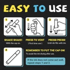 Product Description Notice: The ink needs to be shaken thoroughly before each use. If liquid chalk is left for too long, the pigment particles will sink to the bottom. Writing directly with it will result in uneven ink flow, high water content, and almost colorless ink. 1. If you find that the ink flow of liquid chalk is uneven after being left for a long time, each pen body is equipped with a steel ball. Please try to shake the pen body first to let the steel ball stir the ink fully, and then try to write for a while. Repeat the above steps several times to restore the uniform ink flow. 2. If the pen tip is dry and causes the pen tip to be blocked and the ink flow is uneven, try putting the pen tip in water for about 5 seconds, wet the pen tip, and then try to write for a while, repeat the above steps several times, and the normal ink flow can be restored. If it is still not resolved, please get in touch with us in time.