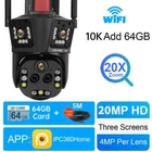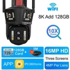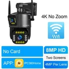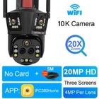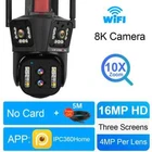 10K/8K 4MP WIFI IP Camera HD Four Lens PTZ Camera Outdoor 20X Zoom Motion Detection Security Camera Waterproof Surveillance Camera Feature: 1. Five Lenses & Five sensors & Three screens design, allowing you to see more details; 2. 10K camera has an ultra wide angle+20x optical zoom, achieving clear monitoring of far and near distances; 6K camera does not support zoom 3. 8K / 10K two resolutions for you to choose. Ultra high definition graphics bring you a higher definition visual experience 8K Resolution: Pixels of each lens are 4MP, 4MP Lens + 4MP Lens+4MP Lens+ 4MP Lens= 8K 10K Resolution: Pixels of each lens are 4MP, 4MP Lens + 4MP Lens + 4MP Lens + 4MP Lens+ 4MP Lens = 10K 3. Equipped with a high gain enhanced 5dBi antenna, your camera can receive a wider range of signals; 4. Built in infrared LED and white LED, presenting clear and colorful day/night images for you; 5. 3 image modes: smart mode/infrared mode/color mode, Infrared mode is infrared on mode. The image is black and white, the white LED is off Color mode: white LED lights up, day and night are color vision; 6. 24/7 motion detection; Real time push to protect your family safety; 7. Built in high-quality speakers and microphones for unobstructed two-way conversations,; 8. Echo suppression and cancellation and noise suppression technology, perfect full duplex voice effect; 9. Supports 2.4GHz WiFi connection (does not support 5G WiFi); Support RJ-45 network cable connection; 10. Real time image transmission, adaptive network; 11. APP: IPC360 HOME Package list 1x PTZ Camera 1x User Manual 1x Power Supply 1x 5m Cable Note: This camera dose not support onvif to work with NVR or DVR. PC client is not supported !!! Option Descriptions 10K camera supports Three screen real-time monitoring. 360 ° without dead corners, allowing you to see more details,20X optical Zoom 8K camera supports Three screen real-time monitoring. 360 ° without dead corners, allowing you to see more details,10X optical Zoom 10K Version Comparison 10K camera, meaning four lenses, each with 4MP, 4MP+4MP+4MP+4MP+4MP=20MP Five lenses & Three screen design 10K camera achieves real-time monitoring of three images. The first image is a pan tilt camera, while the second and third lens images are fixed position cameras. You can click on the fixed position camera in the video where you want to zoom in, and the pan tilt camera will move to the specified position. 20X Optical Zoom 10K camera supports 10X optical zoom, allowing you to zoom in/out on the observed object in the app, allowing you to see more details AI Person/Animal/Vehicle /Detection & Accurate Alerts - Humanoid detection/vehicle detection/pet detection/other detection (need to open cloud storage) Three-screen auto focus auto tracking When human movement is detected, the camera will track the movement of the human body, emit lights, and send real-time alarms. Clear Night Vision CCTV Camera Equipped with IR-Cut led lights, up to 60-100meters night vision distance, so that you can get high quality video even at night. The smart IR-Cut filter switches automatically between day and night. Smart Motion Dection Alert Once the video surveillance camera detect motion, it would send motion detection alert to your mobile phone. Two Way Audio CCTV Camera Built in microphone and speaker,support real time video,which allows you talk with your visitor in real time wherever you are. 360° PTZ Camera Remote control the surveillance camera, support 355° view angle, you can monitor anywhere and any details you want via mobile App. Every corner cover Camera wifi 360 Support Wifi Connection or Network Cable Connection Two installation methods IP66 Waterproof Video Surveillance Support Gourp Sharing You can share the cctv account with family members. it is interesting to share good scenes with family members and friends in real time, multiple users function can fulfill your wish. Support SD card & cloud service (Need to pay) Insert a TF card up to 128 GB (TF can be selected as needed) helps you save the video you are not willing to delete. Product Overview: 10K camera specifications: 8K camera specifications