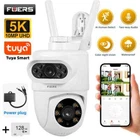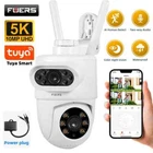 5K 10MP PTZ IP Camera Tuya Smart Outdoor Home Security Auto Tracking Human Detection Camera WIFI CCTV Surveillance Camera Features •Clear video quality, live stream, and watch recordings • Support Intelligent Auto- Tracking • Rotation angle: Pan:310° Tilt:110° • Wide viewing angle, see more of every moment • 2.4GHz WiFi wireless connection, no network cord required • Support local storage by MicroSD card up to 128GB • Support 2-way audio between phone and camera • Support 7X24H video recordings, never miss every moment • Free APP provided, support remote viewing on iOS or Android • Support Tuya cloud storage for motion detected recordings • Powering by universal power adapter ( DC12V/1A) • Flexible installation by wall screws 10MP Dual Lens WIFI PTZ Dome Camera Dual Lens and Dual Screen There are 2 video screens in APP, the upper one is fixed position camera and the lower one is PTZ camera. Day or night, automatically switch lens Built-in IR-CUT core module,IR light and White LED light free switching,better surveillance effect,no color cast and no image distortion.Enhance color purity of the day,and night vision effect. Dual Lens=Bullet Camera + PTZ Camera One camera can montitor two positions,which is equivalent to two cameras,saving you more money. Intelligent Auto-Tracking Smart tracking function ma kes the camera follows moving objects. Smoother Two-Way Audio Talking with people outdoor through the APP foe a more convenient life. Smooth Pan and Tilt Monitoring Smooth 310 degree Pan and 110 degree Tilt allows you carefully observe every corner. Control the movements of the camera. hold on your phone to see whatever you wan to see. Perfect Waterproof Outdoor Security Camera FUERS Outdoor Camera is waterproof (IP66) and enables outdoor use. camera works perfectly both inside and outside your house, even in harsh weather conditions. SD Card & Cloud Storage Support cloud storage and Max 128G SD card. Remote Viewing, Anytime, from Anywhere Multiple connection methods,remotely access the ip camera to see live viewing and recordings via App on your mobile device/computer Product Details