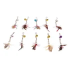 Feature: 1. Unique Design: The replacement feather is in the shape of a cute flying insect, bright colors, small, fun, and practical. 2. Chicken Bird Feathers: Cat pole replacement feather taken from the feathers of chicken birds, rest assured that the material, cats will love it. 3. Fun Little Bell: Cat teaser wand replacement feather with a small bell, the sound is crisp, can attract the cat's attention. 4. Pin Hook: Cat toy replacement feather comes with a pin hook that snaps onto the ringed teaser pole for easy installation. 5. Large Quantity: Cat teasing stick replacement feather 10 a sale, random style, suitable for most commercially available teasing sticks. Specification: Item Type: Cat Pole Replacement Feather Material: Feather Package List: 10 x Cat Pole Replacement Feathers