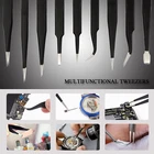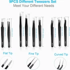 10Pcs ESD Precision Tweezers Set Stainless Steel Tool for Electronics Repair Package Included: 9 x Stainless Steel Tweezers + 1 x Storage Bag Features: - These tweezers made of quality stainless steel provides non-magnetic, and the tweezer surface use matte black will provides non-slip handing. Human-friendly design, easy and comfortable to hold in hands. - This tweezers set will come with a storage bag, which can provide a full protection for all the kit and is convenient to carry. - Each tweezers has a suitable plastic protective sleeve to prevent damage to the tip of tweezers, which is convenient to carry. - The tweezer set has 10 different specification and configurations tweezers, to fit your different need. It can use for circuit board repair, watch repairing, fashion accessories handing, acne removing and so on. Specification: Type: ESD-10, ESD-11, ESD-12, ESD-13, ESD-14, ESD-15, ESD-16, ESD-17, ESD34A-sa ESD-10: 123x11mm ESD-11: 141x8mm ESD-12: 133x10mm ESD-13: 123x10mm ESD-14: 124x10mm ESD-15: 120x10mm ESD-16: 130x12mm ESD-17: 124x9mm ESD34A-sa: 120x10mm Storage bag: 174x50mm for folding size, 174x143mm for opening size Note: Please allow slight dimension difference due to different manual measurement. Due to the shooting angle and the display, the goods may have a color difference from the picture. Thank you for your kindly understanding. Guarantee • Fast & Free Shipping on ALL Orders We believe that you should enjoy the benefit of FREE Shipping on all of your orders within the all Continental States. That's why no matter what you buy, we will ship it for FREE, so the price you see is exactly what you pay. No hidden fees or shipping charges. • Most Items Delivered in 2-6 Business Days When you're buying from us, you deserve fast and reliable service. That's why we have a "Same Business Day" processing in place and wide range of shipping options to choose from in order to deliver your package as soon as possible. *2-6 business days’ time-frame is NOT GUARANTEED and was statistically calculated based on all previous orders. • ALL Orders Placed On Business Days Before 4 PM EST Will Be Shipped Same Day Why wait a day or more for your order to ship? All orders placed before 4 pm EST, Monday to Friday, ship the SAME day. Orders placed on Friday after 4 pm EST, Saturday and Sunday will be shipped the next Monday (if business day). We are closed on all Federal Holidays. • 30 Days Money Back Guaranteed! We will gladly accept your return within 30 days of the original purchase. Please, see below for our full Returns Policy. Shipping • Most orders arrive at your door in 2-6 Business Days FOR FREE! • Place your order before 4 pm EST and it will be shipped the same day, Monday to Friday, excluding major holidays. • We will ship your order to your PayPal Verified address provided. • Please verify your address and make sure that it is your current address before making your payment. Any address change requests after your payment CANNOT be guaranteed. • We do not include invoice with our shipments. Feedback • Positive feedback is automatically done once your order is shipped. • We appreciate all our customers to post a Positive Feedback and "Five-Star" scores. • If for any reason you are not satisfied with your purchase. Please contact us via eBay Message and We will do our best to satisfy you! Payment & Cancellation • Instant PayPal payment is required. • We also accepts Visa, MasterCard, Discover, and American Express through PayPal guest checkout. • Sales tax is charged by eBay based on your shipping address. • To uphold a shipping speed, your order will be processed almost immediately. If you change your mind after your payment is confirmed, we will do our best to stop the order, however, we CANNOT guarantee the cancellation. Return • We will gladly accept your return within 30-Days of the original purchase. • Our return process is simple and fast: 1. We will pay for the return shipping label if you received a broken/defective item(s) or the item(s) doesn't match our description. As soon as we receive the item(s) back we will process a refund for the item(s)which was/were returned. 2. You will be required to pay for the return shipping label if you changed your mind or no longer need the item(s). As soon as we receive the item(s) back we will process a refund for the item(s) which was/were returned. • If we'll receive a package back because of the incorrect address, the refund will be processed excluding our shipping cost. Contact Us • Send us a message on eBay and we will answer within 24h on business days.