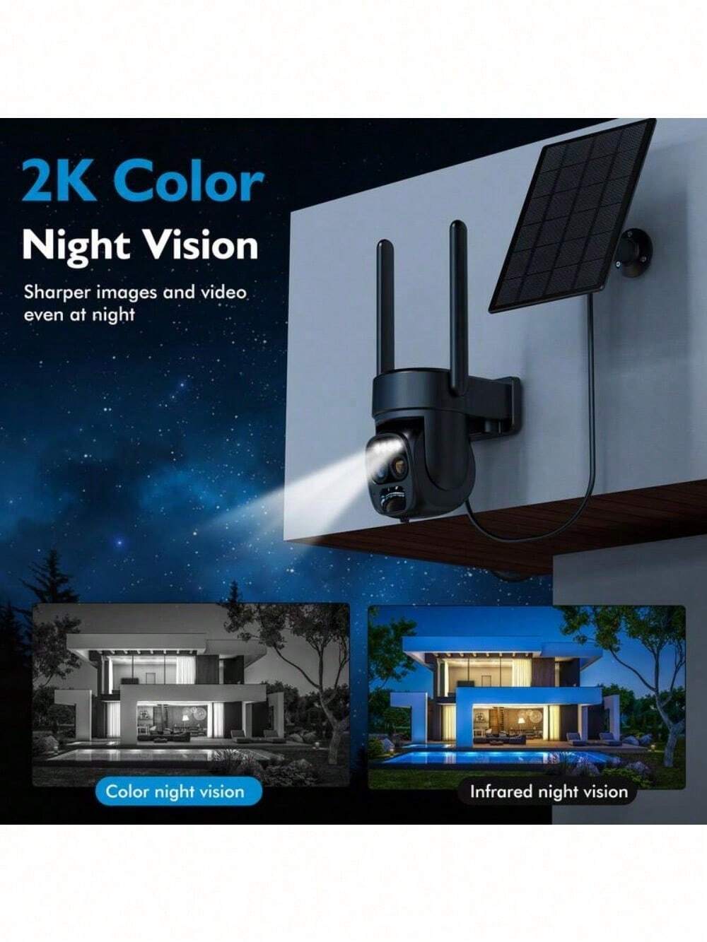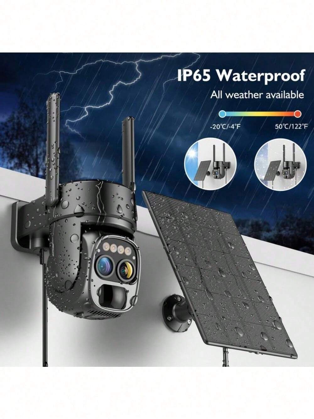 Solar Security Wireless Outdoor Camera,10X Zoom,2K Resolution 360° Pan Tilt Cont
