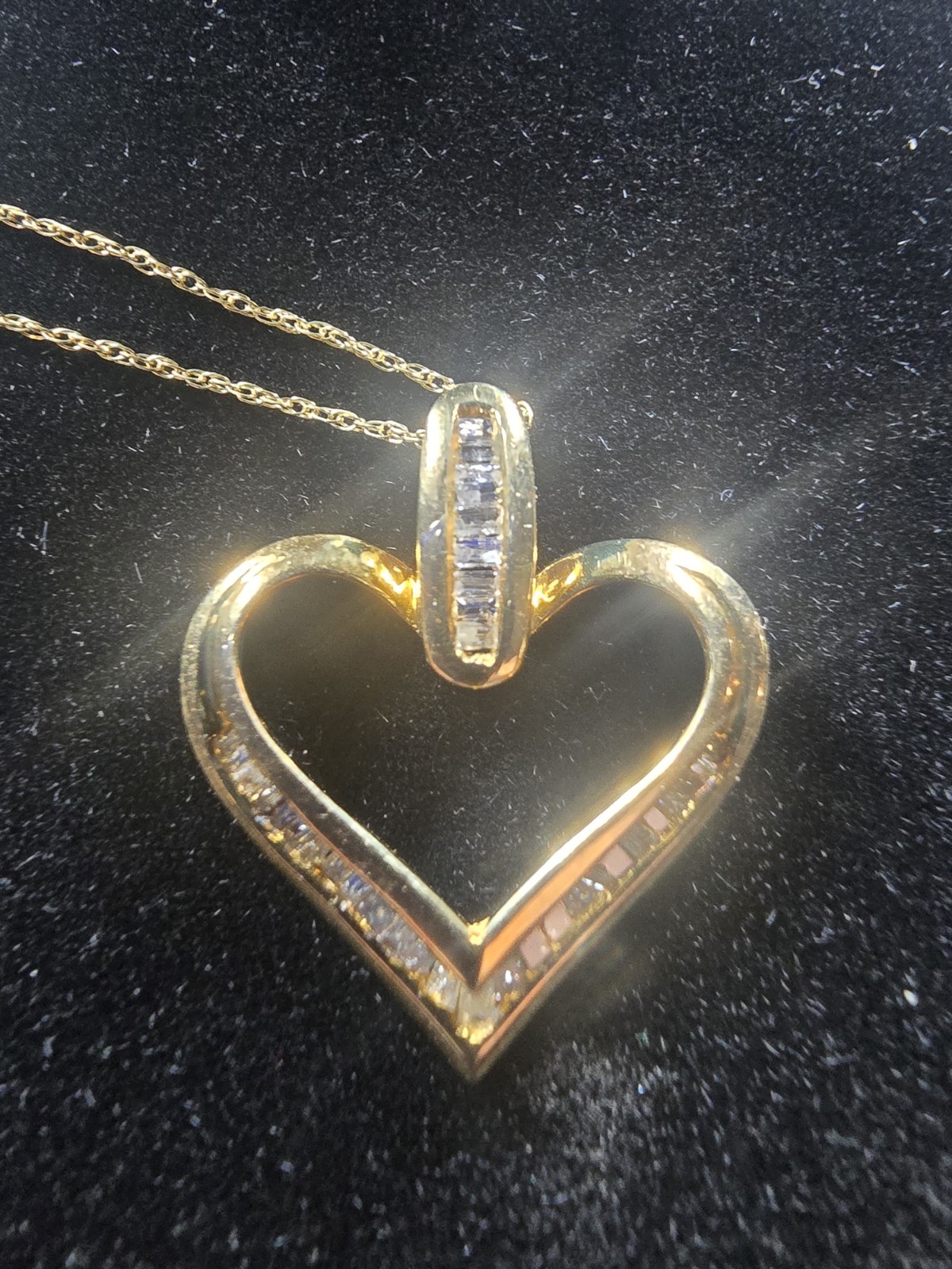 10k yellow Gold Heart necklace with Diamond Accents..I found the exact piece on ebay used at 189..Im starting new much less
