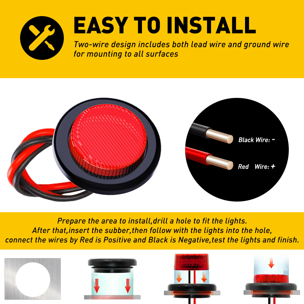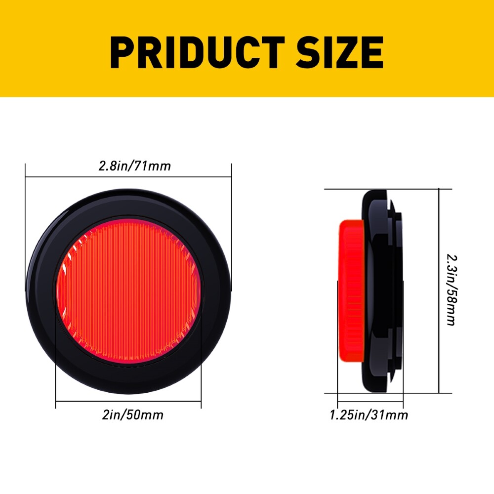 [ULTRA REFLECTIVE POLYCARBONATE LENS]- The 2" round LED side marker uses a specially designed polycarbonate lens to reflect back direct light, allowing your tractor or trailer to be more visible at night and providing a safer driving experience for you and other drivers on the road. [2 IN 1 FUNCTIONALITY]- Driving a tractor, trailer, truck, or any other large vehicle mandates that you drive with side marker lights and reflectors depending on the size of your vehicle. The LED clearance light comes with 7 high powered LEDs, allowing it to serve as both a reflector and clearance light. 10x Red Yellow LED Round Trailer Truck Stop Turn Brake Tail Signal Marker Lights [ ULTRA REFLECTIVE POLYCARBONATE LENS ]- The 2" round LED side marker uses a specially designed polycarbonate lens to reflect back direct light, allowing your tractor or trailer to be more visible at night and providing a safer driving experience for you and other drivers on the road. [ 2 IN 1 FUNCTIONALITY ]- Driving a tractor, trailer, truck, or any other large vehicle mandates that you drive with side marker lights and reflectors depending on the size of your vehicle. The LED clearance light comes with 7 high powered LEDs, allowing it to serve as both a reflector and clearance light. [ 180° VISIBILITY ]- Each Red/Yellow 2" round LED clearance light comes with a protruded light that sticks out past the grommet for increased visibility. When you place the clearance light on the side or the back of your tractor or trailer, the clearance light provides 180° of visibility. Descriptions: Material: Plastic-Rubber Color : Red+Yellow Voltage: 12V Led Qty: 7 LEDs/Unit Size of Light: 2" Round Shape Flush Mount, Great replacement for incandescent lights Waterproof lens and housing are sonically sealed in a single unit Fitment: Universal for 12V Vehicles esp. truck, trailer, etc. You can use it anywhere on vehicles Applications: Function as 2" Round Led Truck Light, Led Marker Light, Side Marker Light, cab roof marker light, clearance lights, or identification lights. Package Includes: 10x 2" Round Side Marker Tail Lights Item Specifics Performance Part Yes To Fit Tail Light / Side Indicator Type Stop, turn, tail, brake and back-up reverse light Manufacturer Part Number FXC/24LEDTCWD/07211 Colors Red/Yellow Lens Color Red/Yellow Product Name Stop/Turn/Tail back up Light Dimension Diameter:2.75" (7cm) Placement on Vehicle Tail, Rear, Left, Right Other Part Number Trailer Fender, Trailer Jacks, RV Jacks Brand Unbranded Fitment Type Performance/Custom Fit for For Jeep,truck trailer,boat,Lorry,Van,caravan Application Universal For Any 12V Vehicle Heavy Duty Trucks LED Type LED Position Stop turn tail back up marker Clearance Lamp Waterproof Yes Item Type Tail Light Assembly Material High quality ABS Manufacturer Warranty Lifetime Voltage 12V Lighting Technology LED Suitable For Side Marker Light Bulb Fitment Code C5W Number of Bulbs 10 Light Color Red/Yellow Features CANbus Compatible Bulb Life Hours Up to 30,000 Hours OE/OEM Part Number AUXITO Quality Bulb Life Hours Up to 30,000 Hours Payment We can accept payment by credit, debit, and gift cards; Apple Pay, Google Pay, PayPal, and PayPal Credit. Shipping 1. All items will be shipped in 24 hours after receiving your payment . 2. We ship this item to US only via USPS first class mail. It usually takes 3-5 working days to deliver. Returns 1. We offer 60 days return policy. 2. Please contact us within 60 days from the date you receive your package if you have any questions with the products . 3. Refund will be sent after we got your returned package. 4. All returned items should be in the original packaging with tracking number. Contact Us We work from Monday - Saturday 9:00AM - 6:00PM PST, but we will reply you once we get your message .There will be some delay on response if you send message or E-Mail on Sunday. DESCRIPTION PAYMENT SHIPPING RETURN POLICY CONTACT US Hot item AUXITO 3157 3156 LED Flashing Brake Stop Stobe Tail Light Bulb Blinker Bulb 2F23 USD 12.91 AUXITO 3157 4157 Amber LED Turn Signal Side Marker Indicator Corner Light 2F23 USD 12.91 Help & Info Payment Policy Shipping Policy Return Policy FAQ About Us 10x Red Yellow LED Round Trailer Truck Stop Turn Brake Tail Signal Marker Lights [ ULTRA REFLECTIVE POLYCARBONATE LENS ]- The 2" round LED side marker uses a specially designed polycarbonate lens to reflect back direct light, allowing your tractor or trailer to be more visible at night and providing a safer driving experience for you and other drivers on the road. [ 2 IN 1 FUNCTIONALITY ]- Driving a tractor, trailer, truck, or any other large vehicle mandates that you drive with side marker lights and reflectors depending on the size of your vehicle. The LED clearance light comes with 7 high powered LEDs, allowing it to serve as both a reflector and clearance light. [ 180° VISIBILITY ]- Each Red/Yellow 2" round LED clearance light comes with a protruded light that sticks out past the grommet for increased visibility. When you place the clearance light on the side or the back of your tractor or trailer, the clearance light provides 180° of visibility. Descriptions: Material: Plastic-Rubber Color : Red+Yellow Voltage: 12V Led Qty: 7 LEDs/Unit Size of Light: 2" Round Shape Flush Mount, Great replacement for incandescent lights Waterproof lens and housing are sonically sealed in a single unit Fitment: Universal for 12V Vehicles esp. truck, trailer, etc. You can use it anywhere on vehicles Applications: Function as 2" Round Led Truck Light, Led Marker Light, Side Marker Light, cab roof marker light, clearance lights, or identification lights. Package Includes: 10x 2" Round Side Marker Tail Lights Payment Shipping Returns Contact Us We can accept payment by credit, debit, and gift cards; Apple Pay, Google Pay, PayPal, and PayPal Credit. 1. All items will be shipped in 24 hours after receiving your payment . 2. We ship this item to US only via USPS first class mail. It usually tak