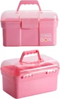 The storage box set is a versatile, well-designed set. Latch with geometric lock for smooth and easy use The storage case features a handle for easy transporting and a removable tray with small compartments Approximate Dimensions: 10.63" L x 7.48" W x 6.5"H Clear, handy storage box with handle to keep your essentials organized The pink color is fun and attractive to bring anywhere. Perfect for art and craft supplies, tools, medicine, sewing kit, cosmetics or fishing supplies Product Description About This Item Material: Plastic Color: Pink Brand: Kinsorcai Approximate Dimensions: Exterior - 11 x 7 x 6.5 inches Multiple compartment design is suitable for storing items of different sizes Upgrade quality ABS material Very lightweight but durable