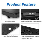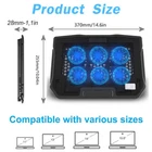 Product Description 2 Fans Cooling Pad Product size: 345 * 245 * 34mm Fan size: 140 * 140 * 15mm (2 pieces) Weight: 750g Design of double USB interface + switch to adjust wind speed Product selling point: Ultra thin and light design, with speed regulation and switch, all iron net design, five gear adjusting bracket 4 Fans Cooling Pad The Unique design of multi-speed adjustment for the tilt scheduling of the notebook radiator, comfortable elevation design, soothes the cervical spine, and meets better environmental needs, four fans for heat dissipation, six-speed adjustment brackets, adjustable air volume, and the product design is light and easy to carry. Product Description: Color: Black Size: 390*275*35mm/15.35x10.83x1.38in Material: ABS + Aluminum Alloy Voltage: DC 5V Current: 0.22A Cooling Type: 4 Fans With Blue LED Suitable for laptops under 16.5-inch Product Features: 1. Adjustable Stand,Anti-Slip,Foldable 2. ULTRA FAST AND POWERFUL COOLING. 4 fans spinning up to 2400 rotations per minute. It’s a high capacity ventilated support with the ability to cool your PC to reasonable temperatures in under a minute. These 4 fans allow for cooling of all the areas of your laptop. 3. MULTIFUNCTIONAL. It has 2 USB ports in order to leave you with one free port. 4. Digital display design, convenient for you to adjust the speed 5. Four Height gear adjustable Package List: 1 x Laptop Cooler Stand With 4 Fans 1 x USB A TO A Cable 1 x User Manual 5 Fans Cooling Pad Product parameters: Product size: 410*260*35MM. Fan size: 120*120*25MM (1 piece) 70*70*15MM (four) Voltage: USB 5V DC Current: 0.22A. Power: 1.75W Weight: 1196G Suitable for laptops under 15.6-inch Features: High wind power, strong cooling capacity, with five copper core coils, no heat high-speed motor. Suitable for notebooks under 15.6-inch , notebooks that exceed the size of the heat sink will not affect the cooling effect Reduce noise and improve user experience. Ergonomic design, 17-degree golden angle increases the height of the computer, bringing comfortable working and entertainment postures Dual USB sockets, dual switch control, free adjustment of wind speed and light Selling point: Excellent game appearance, showing extraordinary power Five-core heat dissipation, no pressure to eat chicken This product can support laptops under the age of 15.6-inch Dual USB interface, dual speed regulation function. Package Portable Laptop Cooling Pad * 1 6 Fans Cooling Pad The Unique design of multi-speed adjustment for the tilt scheduling of the notebook radiator, comfortable elevation design, soothes the cervical spine, and meets better environmental needs, six fans for heat dissipation, six-speed adjustment brackets, adjustable air volume, and the product design is light and easy to carry. Product Description: Color: Black Size: 365*280*30mm/14.37x11.03x1.19in Material: ABS + Aluminum Alloy Voltage: DC 5V Current: 0.22A Cooling Type: 6 Fans With Blue LED Suitable for laptops under 17.3-inch Product Features: 1. Adjustable Stand,Anti-Slip,Foldable 2. ULTRA FAST AND POWERFUL COOLING. 6 fans spinning up to 2400 rotations per minute. It’s a high capacity ventilated support with the ability to cool your PC to reasonable temperatures in under a minute. These 6 fans allow for cooling of all the areas of your laptop. 3. MULTIFUNCTIONAL. It has 2 USB ports in order to leave you with one free port. 4. Digital display design, convenient for you to adjust the speed 5. Four Height gear adjustable Package List: 1 x Laptop Cooler Stand With 4 Fans 1 x USB A TO A Cable 1 x User Manual #2-6 Fans Cooling Pad Product parameters: USB LED notebook cooling fan Product parameter Suitable for laptops below 15.6-inch Product size: 370*255*27MM Rated current: 0.45±10% Fan speed: 2400kpm±15% Speed: adjustable speed (the brightness of the light becomes brighter or darker with the speed of the fan) Fan size: 7015*6 Product weight: 1KG Product voltage: USB DC5V Features: High wind power, strong cooling capacity, with six copper core coils, no heat high-speed motor. Suitable for notebooks under 15.6-inch , notebooks that exceed the size of the heat sink will not affect the cooling effect Reduce noise and improve user experience Ergonomic design, 17-degree golden angle increases the height of the computer, bringing comfortable working and entertainment postures Dual USB sockets, dual switch control, free adjustment of wind speed and light. Selling point: Excellent game appearance, showing extraordinary power six-core heat dissipation, no pressure to eat chicken This product can support laptops under the age of 15.6-inch Dual USB interface, dual speed regulation function. Package Portable Laptop Cooling Pad * 1 1 Fans Cooling Pad Product parameters Fan: Big fan Thickness: 2.4cm Product size: 33*25*2.4cm 1. Ergonomic design reduces cervical spine pressure and effectively protects your cervical spine; 2. The standard size is about the size of a 14-inch notebook. For a notebook larger than 14 inches, the notebook will be larger, but it can also be used; 3. 140*140*15cm ultra-large fan design provides strong heat dissipation air volume; 4. Blow straight to the bottom of the notebook to quickly take away heat; 5. Special metal mesh plate design, reliable function and auxiliary heat dissipation; 6. The stable fixed card position design, carefully care for the notebook; 7. Color personality stylish appearance design, smooth and delicate hand feeling. 8. Product size: 330*250*24MM (length, width, height) Bearing type: Hydraulic Bearing Rated voltage: 5VDC Rated current: 0.25+10%A Input power: 1.3W Fan speed: 900+10%RPM Maximum air volume: 47.35CFM Noise: 25.1db Package Portable Laptop Cooling Pad * 1 3 Fans Cooling Pad Product parameters: Scope of application: suitable for heat dissipation of notebook computers under 16 inches (inclusive) Heat sink material: iron mesh, engineering plastics Radiator size: 36 * 16 * 2CM Fan size: 12*12*1.5cm Fan speed: 1000±10%RPM Air volume: 70