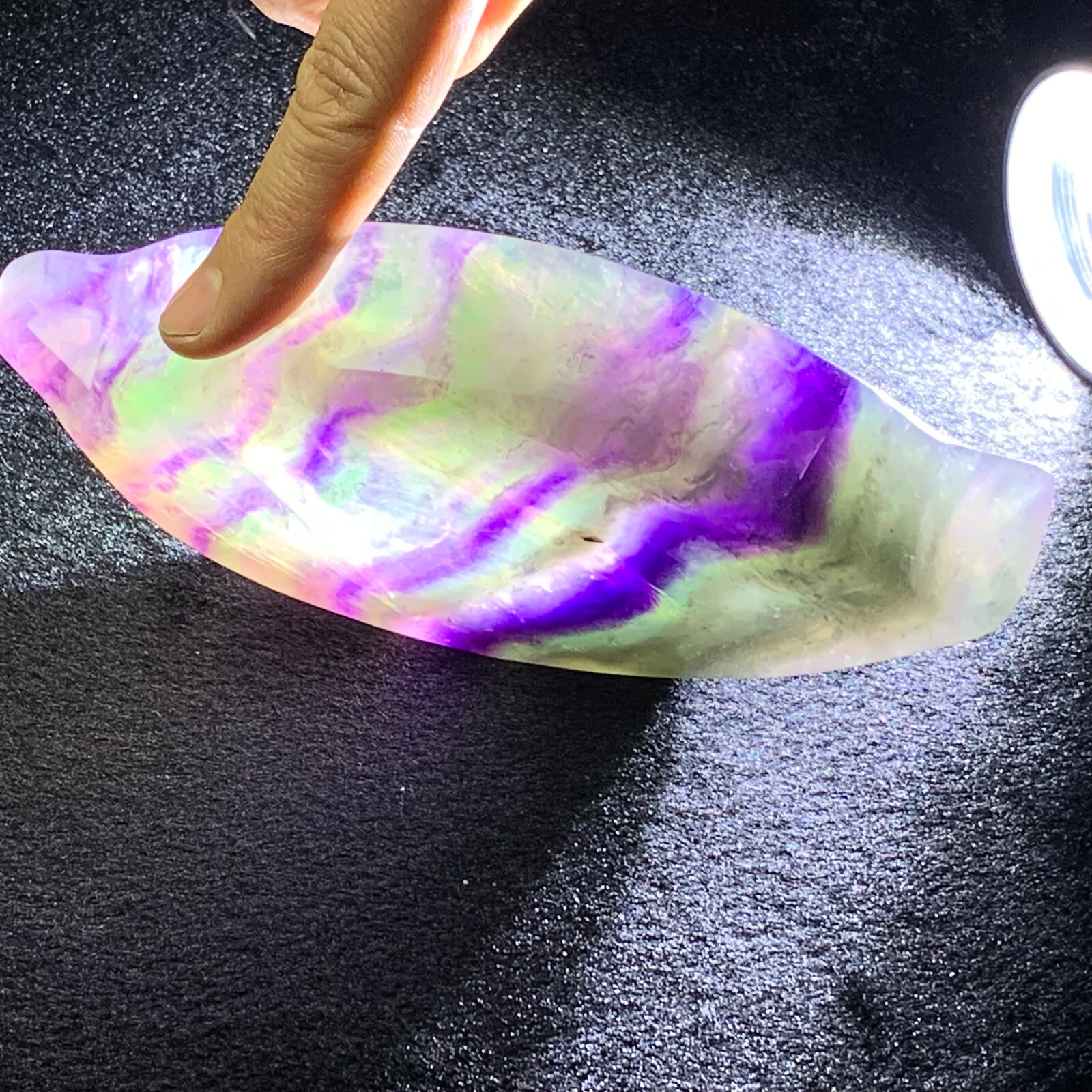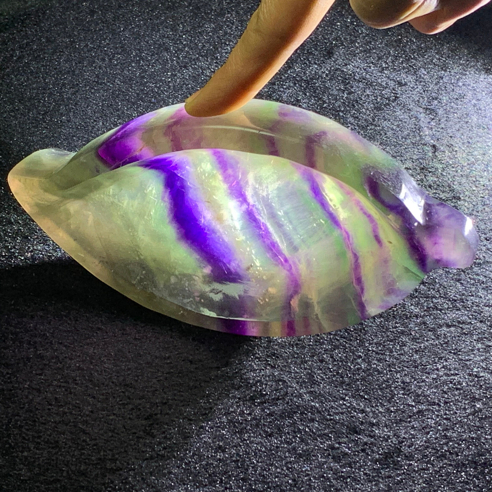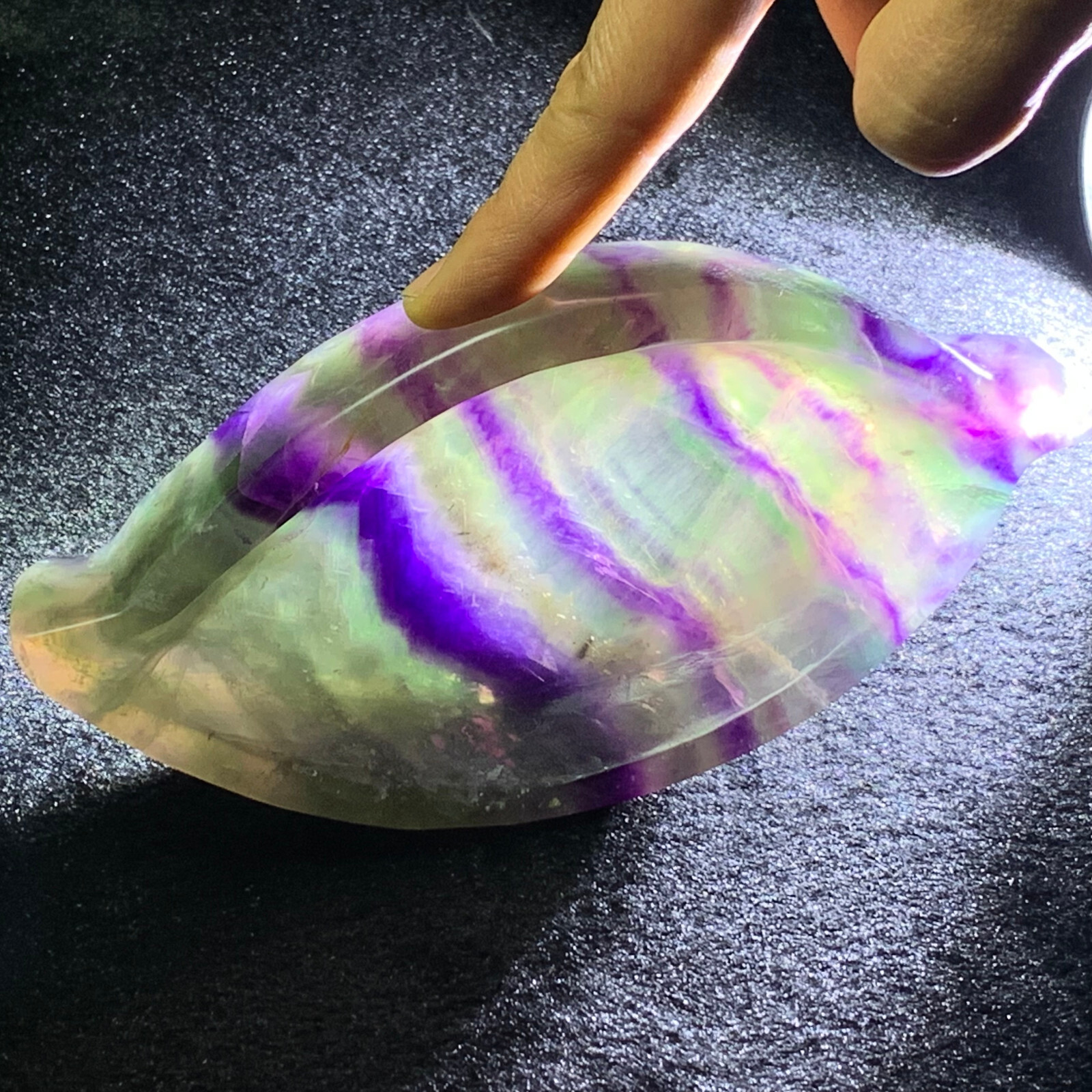 Rainbow Fluorite Quartz Hand Carved Healing Crystal Ashtray 0.6LB