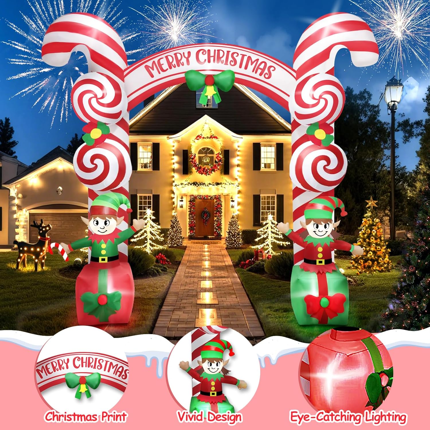 🍭11FT Christmas Archway Inflatable: You will receive the Christmas Peppermint Santa Elf Archway inflatables with impressive design, much bigger than normal holiday inflatables, so it can add more Christmas atmosphere. Everything needed for installation such as ground stakes, metal buckles, patch cloth and blower are included. Installation instructions are included, please read carefully before installation. ⛄Eye-Catching LED Light: The Christmas inflatable has built-in super bright LED lights. The colorful and innovative design create a very festive and lively atmosphere, making your home and this huge Christmas archway decoration become a beacon to create a joyful holiday atmosphere. It will be more attractive than all the decoration of your neighbors. 🍭 Upgrade Air Blower: The giant Christmas archway inflatable is made of 210T polyester fiber and updated air blower, ensuring that the Christmas yard inflatable decorations can be used even on rainy days. A built-in sandbag at the bottom enhances the stability of this huge decoration. But in order to better preserve it, we don't recommend using it outdoors when it's heavily windy and rainy. ⛄Quick Install:You only need to put the Christmas outdoor inflatables on a open space and zip up the bottom of the inflatable before inflating, and it will automatically inflate immediately after plugging into a standard electrical outlet. At the same time, it deflates very quickly and is easy to store. 🧝Bring The Christmas To Life: With bright red, green, and white colors, and Peppermint Candy Santa Elf design, classic Christmas elements will never go out of style. You will get countless compliments when people drive by your yard. People will stop to take pictures with the Christmas inflatable arch or take photos of your family and children in front of the Christmas Peppermint Candy Santa Elf arch. Feature: - Our inflatable Peppermint Candy Santa Elf Arch comes with 10 ground stakes and 4 ropes, which provide additional anchoring points to ensure the Inflatable Archway stays firmly in place even in adverse weather conditions. - Peppermint Candy Santa Elf Arch inflatable is suitable for a variety of occasions. It is ideal for garden, yard, walkway, patio, lawn, or indoor/outdoor use. Specification: Fabric: Polyester Size: 11FT Power: Plug in Package Includes: 1 x Christmas Inflatables Peppermint Candy Santa Elf Archway 1 x Patch Cloth 4 x Metal Buckles 4 x Black Ropes 8 x Ground Stakes Note: 1.Please allow 0-1cm error due to manual measurement. please make sure you do not mind before you bid. 2.Due to the difference between different monitors, the picture may not reflect the actual color of the item. 3.Kindly refer to the pictures and page descriptions for the number of accessories. The number of accessories in the manual is for reference only.