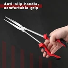 Return Policy Fast Delivery Trusted seller 11 Inches Long Reach Nose Pliers With Serrated Jaws - Straight Extra Long Needle Nose Pliers With TPR Handle for Mechanics, Technicians, Contractors - for Hard-to-Reach Narrow Spaces Product Description Applications: Long reach pliers work well in tight spaces that are difficult to reach, and jaws with serrated teeth allow for better gripping and bending of objects. Suitable for a home garage, professional auto body shop, construction site, or carpenter’s tool box. Comfortable Grip: Ergonomically designed non-slip TPR handles, hold firmly and comfortably. Material: Made of high-quality carbon steel, strong and durable, the surface of the pliers is finely polished, which can be used for a long time. Size: 287 x 69 x 22mm / 11.3 x 2.7 x 0.9". Warm Tips: T may be some oil on the surface of the plier, it is normal phenomenon. A little oil can make the tool work more smooth and protect the tool. Shipping Returns Payment Shipping Shipping is FREE to all addresses other than APO/PO boxes in the lower 48 states. All our stock ships from US-based warehouses. Shipped via USPS or UPS (depending on location and package weight) Unless stated otherwise, all orders will ship within 24-72 hours of your payment being processed. Check our feedback to see the great reviews of FAST shipping we offer. Returns Seller does not accept returns Payment We currently accept payment via eBay managed payments only. Once payment is cleared, we will dispatch your shipment within 1-3 business days. Please refer to the "Shipping" tab for more information regarding shipping speed to your destination.
