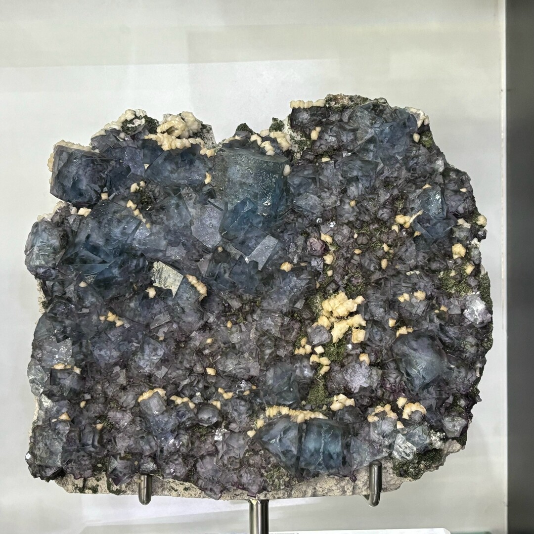 44LB Rare Natural Sugar Fluorite Mineral Specimen with Large Quartz Crystal Stand