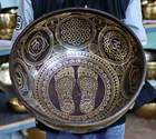 Material/Type: Seven Metals Measurement of Bowl: Diameter: 12 Inches Height: 5 Inches Bowl Weight: 2.6 Kg arpprox. Bowls come with cushion, stick, and drumstick. The footprints of the Buddha symbolize the Buddha's presence, as they are believed to be the imprints where the Buddha actually touched the ground. At the same time, the Buddhapada signify the Buddha's absence now that he has entered nirvana, and thus are a reminder of the Buddhist ideal of nonattachment. This bowls was true handmade bowl. In the bowl there was beautiful hand crafted Buddha Feet was beautifully crafted by hand. This handmade Tibetan singing bowls are chosen carefully by sound testing to ensure their healing properties. These exclusive healing masterpieces are carefully made for long lasting and powerful sounds. The highest lamas used these Tibetan bowls as ritual offerings to their gods and deities, and some believe the highest lamas used these bowls for rituals to travel to another level of consciousness, but it was forbidden to talk about these bowls, even within monasteries itself. Bowl was made for master healing, sound therapy, Yoga, Meditation, Sound healing, Reiki healing, chakra balancing, sound bathing, Zen healing, etc. Bowl has very deep sound and vibration with long relaxing sound. BENEFIT OF EXTRA LARGE SINGING BOWL: Stress reduction: The soothing tones produced by a singing bowl can help induce a state of relaxation, reducing stress and promoting a sense of calmness. Meditation aid: Singing bowls have been used for centuries in meditation practices. The resonant sound helps to focus the mind, deepen concentration, and facilitate a meditative state. Deep relaxation: The vibrations and harmonics produced by the singing bowl can penetrate deep into the body, promoting a profound sense of relaxation and releasing tension. Mindfulness enhancement: Singing bowls can serve as a mindfulness tool, helping to anchor attention to the present moment and increase awareness of one's thoughts, feelings, and sensations. Energy balancing: It is believed that the vibrations and sound frequencies emitted by singing bowls can help balance the body's energy centers, promoting a sense of harmony and well-being. Chakra alignment: Singing bowls are often used in chakra healing practices. Each bowl is associated with a specific chakra, and the sound vibrations can help balance and align these energy centers. Pain relief: The resonant sound waves produced by singing bowls can have a therapeutic effect on the body. They can help alleviate physical pain, reduce inflammation, and promote overall well-being. Improved sleep: Using a singing bowl before bedtime can help create a peaceful and relaxing environment, promoting better sleep quality and relieving insomnia or sleep-related difficulties. Aura cleansing: It is believed that the sound and vibrations of a singing bowl can help cleanse and purify the energy field around the body, removing any negative or stagnant energies. Spiritual connection: Singing bowls have a long history of use in spiritual and religious practices. They can aid in deepening one's spiritual connection, facilitating introspection, and enhancing a sense of inner peace and spirituality. Returns and Shipping:- We ships each of our order with in 2-5 business day and update tracking details of standard international shipping se rvice provider, we are happy and return our product and fully refund the payment in case of any defect on our products. Please contact us within 30 days.
