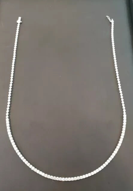 $ 174.2418CT Round Lab Created Prong Set Solitaire Diamond Tennis Necklace 925 Silver
