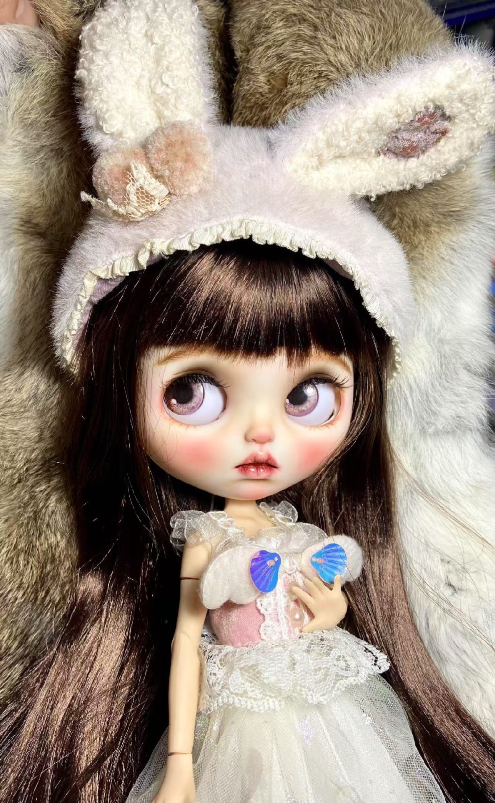 Absolutely love this custom Blythe doll! The hand-sculpted face and hand-painted details give her so much personality, and the 4 pairs of glass eye chips make her expressions pop. The 19-joint body allows for endless posing, and the included outfits and wig add even more charm. The craftsmanship is stunning—definitely a unique treasure for any collector. Highly recommend!